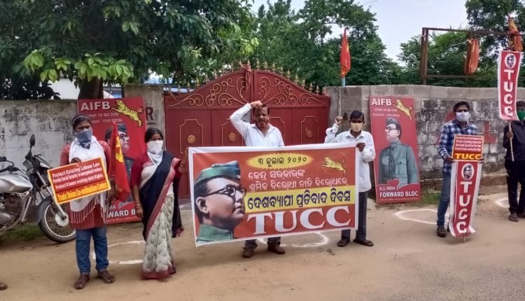 କେନ୍ଦ୍ର ସରକାରଙ୍କ ଶ୍ରମିକ ବିରୋଧୀ ନୀତି ବିରୋଧରେ ଟିୟୁସିସି ପକ୍ଷରୁ ରାଜ୍ୟବ୍ୟାପୀ ପ୍ରତିବାଦ ଦିବସ ପାଳିତ ।
