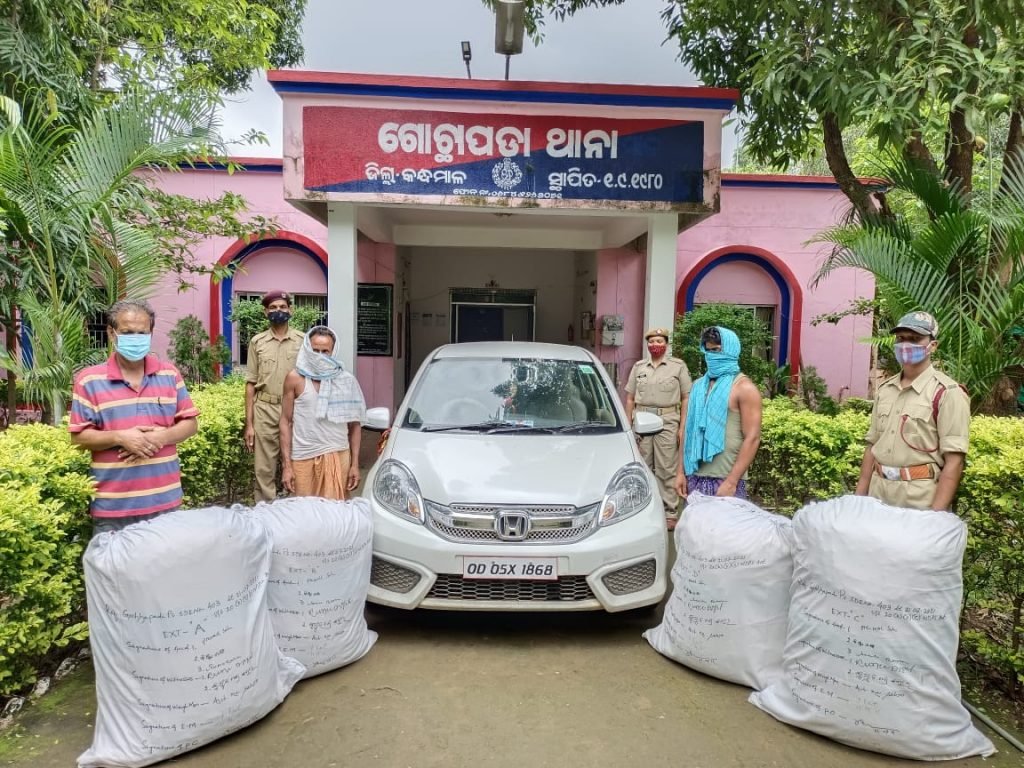 କନ୍ଧମାଳ,୨୨/୦୭(ପିପିଟି): କନ୍ଧମାଳ ଜିଲ୍ଲା ଗୋଛାପଡ଼ା ପୋଲିସ ପାଟ୍ରୋଲିଂ କରୁଥିବା ବେଳେ ନେଡ଼ି ପଦର ଗ୍ରାମ ନିକଟ ପୃଦେନି ଛକରେ ଚଢ଼ାଉ କରି ଏକ କାର ସମେତ ୧୮୦କେଜି ଗଞ୍ଜେଇ ଜବତ କରିଛି। ଏଥିରେ ସଂପୃକ୍ତ ଥିବା ୩ ଜଣ ଅଭିଯୁକ୍ତଙ୍କୁ ମଧ୍ଯ ଗିରଫ କରିଛି ପୋଲିସ। ଗିରଫ ବ୍ୟକ୍ତିମାନେ ହେଲେ ନେଡ଼ିପଦର ଅଞ୍ଚଳର ପ୍ରକାଶ ସାହୁ, ବିନିକିମେଣ୍ଡି ଗ୍ରାମର କଷ୍ଟ ରଣା, ଶିଶୁ ରଣା ବୋଲି ଗୋଛାପଡା ଥାନା ଅଧିକାରୀ ରଣଜିତ କ୍ରମାର ମୁନୀ କହିଛନ୍ତି । ଏମାନେ କାର ଯୋଗେ ଏ ସବୁ ଚୋରା ଗଞ୍ଜେଇକୁ ଫୁଲବାଣୀ ଆଡକୁ ଆଣିବା ପାଇଁ ଯୋଜନା କରୁଥିଲେ ବୋଲି ଥାନା ଅଧିକାରୀ ମୁନୀ ପ୍ରକାଶ କରିଛନ୍ତି । ପ୍ରକାଶ ଯେ,ରାଜ୍ୟପୋଲିସ ମହାନିର୍ଦ୍ଦେଶକ ଅଭୟ ଫୁଲବାଣୀ ଗସ୍ତରେ ଆସି ଗଞ୍ଜେଇ ଚାଷକୁ ମୁଳୋତ୍ପାଟନ କରିବାକୁ କହିବାପରେ ପୋଲିସ ସକ୍ରିୟ ହୋଇପଡିଥିବା ଦେଖାଯାଉଛି । ଚୋରା ଗଞ୍ଜେଇ ମାଫିଆଙ୍କ ଉପରେ ପୋଲିସ ସତର୍କ ନଜର ରଖିଛି ଓ ଆଗକୁ ଚୋରା ଗଞ୍ଜେଇ ମାଫିଆଙ୍କୁ ସାବାଡ କରିବାପାଇଁ ପୋଲିସ ବ୍ଲୁ ପ୍ରିଣ୍ଟ ପ୍ରସ୍ତୁତ କରିଥିବା ଜଣାପଡିଛି।