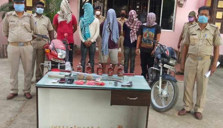 ବେଲଗୁଣ୍ଠା,(ପିପିଟି ନ୍ଯୁଜ୍) ୨୬/୦୫,ଗାଙ୍ଗପୁର ଥାନା ଅନ୍ତର୍ଗତ ମାଁ ବୁଢ଼ାକେନ୍ଦୁ ଜଙ୍ଗଲ ନିକଟରେ ଏକ ପାଞ୍ଚ ଜଣିଆ ଗ୍ୟାଙ୍ଗ ବଡ ଧରଣର ଡକାୟତି କରିବା ପାଇଁ ଯୋଜନା କରୁଥିବା ବେଳେ ପୋଲିସ ପେଟ୍ରୋଲିଂ ବେଳେ ଧରାପଡି ଜେଲ ଯାଇଛନ୍ତି ।ସେମାନଙ୍କ ଠାରୁ ଏକ ଦେଶୀ ପିସ୍ତଲ, ଦୁଇଟି ଅଫୁଟା ଗୁଳି, ଦୁଇଟି ହାତବୋମା,ଗୋଟିଏ ଖଣ୍ଡା,ତିନୋଟି ମୋବାଇଲ,ମଦ ବୋତଲ,ଗ୍ଳାସ୍ ଓ ଲଙ୍କା ଗୁଣ୍ଡ ଜବତ କରାଯାଇଛି ।ଗିରଫ ବ୍ୟକ୍ତିମାନେ ହେଲେ ଗାଙ୍ଗପୁର ଥାନା ନାଟେଙ୍ଗା ଗ୍ରାମର ମଙ୍ଗୁଳୁ ପରିଡାଙ୍କ ପୁଅ ମନୋଜ ପରିଡା(୨୭),ଭଞ୍ଜନଗରର ମହମ୍ମଦ ଆକବରଙ୍କ ପୁଅ ଏମ.ଡି.ଇମ୍ରାନ ଓରଫ ଏମୁ (୨୫),ଭଞ୍ଜନଗର ପୁରୁଣା ବଜାର ସାହିର ଅଶୋକ ସାହାଣୀଙ୍କ ପୁଅ କେଶବ ସାହାଣୀ(୨୫),ଭଞ୍ଜନଗର ଏନ୍.ଏ.ସି ରୋଡର ପ୍ରମୋଦ ବେହରାଙ୍କ ପୁଅ ରାକେଶ ବେହେରା(୨୫)ଭଞ୍ଜନଗର ଥାନା ଚାକୁଣ୍ଡା ପଲ୍ଲୀର ମୋଚିରାମ ଗୌଡଙ୍କ ପୁଅ କାହ୍ନୁଚରଣ ଗୌଡ(୨୫) ବୋଲି ଗାଙ୍ଗପୁର ଥାନାଧିକାରୀ ଧିରେଶ କୁମାର ଦାସ ପ୍ରକାଶ କରିଛନ୍ତି ।ସୁଚନା ପ୍ରକାରେ ଆଜି ଭୋର ୩.୩୦ମି ସମୟରେ ଗାଙ୍ଗପୁର ଥାନା ଏସ୍.ଆଇ ଅଜିତ ପରିଡା ପେଟ୍ରୋଲିଂ କରୁଥିବା ବେଳେ ବୁଢାକେନ୍ଦୁ ଜଙ୍ଗଲ ନିକଟରେ ଏକ ବୁଦା ନିକଟରେ ପାଞ୍ଚ ଜଣ ଯୁବକ ଏକତ୍ରିତ ହୋଇ କିଛି ଗୋଟେ ଯୋଜନା କରୁଥିବାର ସନ୍ଦେହ କରି ଥାନା ଅଧିକାରୀଙ୍କୁ ସୁଚନା ଦେଇଥିଲେ ।ଥାନାଧିକାରୀ ଫୋର୍ସ ସହ।ଘଟଣା ସ୍ଥଳରେ ପହଞ୍ଚି ଚାରିପଟୁ ଘେରାଉ କରି ସମସ୍ତ ପାଞ୍ଚ ଜଣଙ୍କୁ ଧରିବାରେ ସକ୍ଷମ ହୋଇଥିଲେ ।ତଦନ୍ତ ବେଳେ ଡକାୟତି ଉଦ୍ୟମ ପାଇଁ ଯୋଜନା କରୁଥିବା ସ୍ୱୀକାର କରିଥିଲେ ।ଏସ୍.ଆଇ ଶ୍ରୀ ପରିଡାଙ୍କ ଏତାଲାକ୍ରମେ ଗାଙ୍ଗପୁର ଥାନାରେ୧୨୯/୨୦ରେ ଏକ ମାମଲା ରୁଜ୍ଜୁ କରି ସମସ୍ତଙ୍କୁ ଆସ୍କା ଜେ.ଏମ.ଏଫ୍.ସି କୋର୍ଟ ଚାଲାଣ କରିଥିବା ଜଣାପଡ଼ିଛି ।ଏସ୍.ଆଇ ପ୍ରମୋଦ କୁମାର ବେହେରା ଘଟଣାର ତଦନ୍ତ କରୁଛନ୍ତି ।ଗିରଫ ଯୁବକ ମାନଙ୍କ ନାମରେ ବିଭିନ୍ନ ସ୍ଥାନରେ ଏକାଧିକ ମାମଲା ରହିଥିବା ପୋଲିସ କହିଛି ।