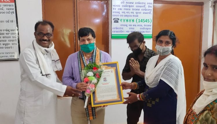 ଯାଜପୁର,୨୭/୦୫, (ଏ,ରାଉତ) ଯାଜପୁର ଜିଲ୍ଲା ଧର୍ମଶାଳା ବ୍ଲକ କାଏମ ସ୍ଥିତ ସରସ୍ୱତୀ ଶିଶୁ ମନ୍ଦିର ପକ୍ଷରୁ ଧର୍ମଶାଳା ଅଂଚଳର ଲୋକପ୍ରିୟ ତହସିଲଦାର ସରୋଜ କୁମାର ପଣ୍ଡାଙ୍କୁ କରନା ଯୋଦ୍ଧା ଭାବେ ସମ୍ବର୍ଦ୍ଧିତ କରାଯାଇଛି । ତହସିଲଦାର ଶ୍ରୀ ପଣ୍ଡା ଧର୍ମଶାଳା ଅଂଚଳରେ ଲକ ଡ଼ାଉନ ସମୟରେ ନିଜ ସରକାରୀ କାର୍ଯ୍ୟ କରିବ ସହିତ ବିଭିନ୍ନ ଅଂଚଳରେ ଗରିବ ଲୋକମାନଙ୍କୁ ଶୁଖିଲା ଖାଦ୍ୟ ଯୋଗାଇଥିଲେ ।