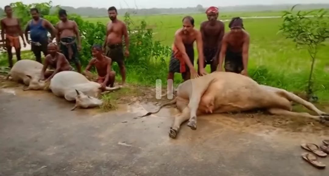 ବୋଲଗଡ଼,୦୪/୦୭(ପିପିଟି):ବୋଲଗଡ଼ ବ୍ଳକ ଅନ୍ତର୍ଗତ ସାଗର ଗୁଆଁ ଗ୍ରାମ ପଞ୍ଚାୟତ ର ବାଳସିଂହ ଗ୍ରାମରେ ବିଲରେ ଚରୁଥିବା ଦୁଇଟିଗାଈ ଓ ଗୋଟିଏ ବଳଦକୁ ଆଜି ଦିନ ଦୁଇଟା ବେଳେ ବଜ୍ରାଘାତ ହେବାରୁ ମୃତ୍ୟୁ ଘଟିଛି। ବାଳସିଂହ ଗ୍ରାମର ବଳଦଟି ସେଶଦେବ ମହାପାତ୍ର ଓ ଗାଈ ଦୁଇଟି ପୁରୁଷୋତ୍ତମ ଦଳେଇ ଓ ବିକ୍ରମ ଦଳେଇଙ୍କର ଅଟେ।