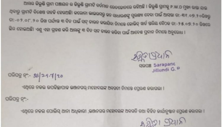 ଭଞ୍ଜନଗର,୩୧/୦୭(ପିପିଟି); ଭଞ୍ଜନଗର ବ୍ଲକ ଜିଲୁଣ୍ଡି ଗ୍ରାମ ରେଡ଼ ଜୋନରେ ଥିବାରୁ ସରପଞ୍ଚ ସସ୍ମିତା ପ୍ରଧାନ ଆଜିଠାରୁ ଆସନ୍ତା ମାସ ୨ତାରିଖ ପର୍ଯ୍ୟନ୍ତ ଗ୍ରାମକୁ ୩ଦିନିଆ ସଟ ଡାଉନ ଘୋଷଣା କରିଛନ୍ତି । ଏହି ଗ୍ରାମ ଦେଇ ପୂର୍ତ୍ତ ବିଭାଗ ରାସ୍ତାଟି ଯାଇଥିବାରୁ ବିଶେଷ ଗହଳି ଲାଗି ରହୁଥିଲା । ତେଣୁ ଲୋକଙ୍କ ସୁରକ୍ଷା ଦୃଷ୍ଟିରୁ କୋଭିଡ଼ ୱାର୍ଡ ସ୍ତରୀୟ ବୈଠକରେ ସର୍ବସମ୍ମତି କ୍ରମେ ଏହା ସ୍ଥିର ହେବାପରେ ପ୍ରଶାସନ ତରଫରୁ ଅନୁମତି ପାଇ ସଟଡାଉନ କାର୍ଯ୍ୟକାରୀ ହୋଇଛି । ଏସମ୍ପର୍କରେ ଭଞ୍ଜନଗର ଉପଜିଲ୍ଲାପାଳ ଓ ଥାନା ଅଧିକାରୀ ଙ୍କୁ ଅବଗତ କରାଯାଇଛି।ଅମାନିଆଙ୍କ ପାଇଁ କଠୋର କାର୍ଯ୍ୟାନୁଷ୍ଠାନ ଗ୍ରହଣ କରିବା ପାଇଁ ନିର୍ଦ୍ଦେଶ ଦିଆଯାଇଛି।