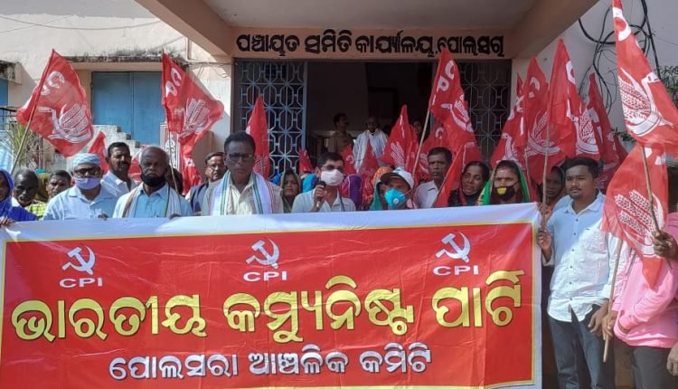 ପୋଲସରା,୩୦/୧୨(ପିପିଟି): ଅଖିଳ ଭାରତ କୃଷକ ସଭା ପୋଲସରା ଆଞ୍ଚଳିକ କମିଟି ପକ୍ଷରୁ ଆଜି ମୂଖ୍ୟମନ୍ତ୍ରୀ ଙ୍କ ଉଦ୍ଦେଶ୍ୟରେ ସ୍ଥାନୀୟ ଗୋଷ୍ଠୀ ଉନ୍ନୟନ ଅଧିକାରୀଙ୍କୁ ୭ ଦଫା ଦାବି ପତ୍ର ପ୍ରଦାନ କରାଯାଇଛି। ଆଜି ସ୍ଥାନୀୟ ରତନି ଠାକୁରାଣୀ ମନ୍ଦିର ଠାରୁ ତିନି ଶତାଧିକ କୃଷକ ଏକ ଶୋଭାଯାତ୍ରା ରେ ବାହାରି ପଞ୍ଚାୟତ ସମିତି କାର୍ଯ୍ୟାଳୟରେ ପହଞ୍ଚିବା ପରେ ସେଠାରେ ସମବେତ କୃଷକ ମାନଙ୍କୁ ଉଦବୋଧନ ଦେଇ ସିପିଆଇ ଗଞ୍ଜାମ ଜିଲ୍ଲା ସମ୍ପାଦକ ପ୍ରକାଶ ପାତ୍ର ଉଭୟ କେନ୍ଦ୍ର ଓ ରାଜ୍ୟ ସରକାରଙ୍କ କୃଷକ ଭାରତ ନିତି ର ତିବ୍ର ସମାଲୋଚନା କରିଥିଲେ। ଏଥି ସହିତ ଦେଶର ବୃହତ ଶିଳ୍ପପତି ମାନଙ୍କୁ ଲକ୍ଷ ଲକ୍ଷ କୋଟି ଟଙ୍କା ଛାଡ କରୁଥିବା ବେଳେ ନଭେମ୍ବର ମାସ ରେ ଲଗାଣ ବର୍ଷା ଯୋଗୁଁ ଘଟିଥିବା ଫସଲ ହାନିର ବର୍ତ୍ତମାନ ସୁଦ୍ଧା ଆକଳନ ନ ହୋଇପାରିଲା ଦୁର୍ଭାଗ୍ୟଜନକ ବୋଲି କହିଥିଲେ। ଅନ୍ୟ ମାନଙ୍କ ମଧ୍ୟରେ ଅଖିଳ ଭାରତ କୃଷକ ସଭା ର ଗଞ୍ଜାମ ଜିଲ୍ଲା ସମ୍ପାଦକ ରାଜୀବ ଲୋଚନ ପଣ୍ଡା , ବରିଷ୍ଠ କୃଷକ ନେତା ସୁଦର୍ଶନ ସ୍ୱାଇଁ , ଆଞ୍ଚଳିକ ସମ୍ପାଦକ ଦଣ୍ଡପାଣି ସାମଲ ଏବଂ ବିକେଏମ୍ୟୁ ନେତା ହରି ହର ପାତ୍ର ପ୍ରମୁଖ ଉଦବୋଧନ ଦେଇ ତୁରନ୍ତ ତାଷୀ ମାନଙ୍କୁ କ୍ଷତିପୂରଣ ଦେବା , କୃଷି ଋଣ ଛାଡ କରିବା , କ୍ଷତିଗ୍ରସ୍ତ ଚାଷୀକୁ ଫସଲ ବୀମା ଟଙ୍କା ତୁରନ୍ତ ଦେବା,ଚାଷୀ ମାନଙ୍କୁ ୫୫ ବର୍ଷ ବୟସରେ ମାସିକ ୩ ହଜାର ଟଙ୍କା ଭତ୍ତା ଦେବା,ଧାନ କୁଇଣ୍ଟାଲର ସର୍ବ ନିମ୍ନ ମୂଲ୍ୟ ୩ ହଜାର ଟଙ୍କା କରିବା ଏବଂ ଲଘୁଚାପ ଜନିତ ବର୍ଷା ଯୋଗୁଁ କ୍ଷତିଗ୍ରସ୍ତ ଭାଗଚାଷୀ ମାନଙ୍କୁ ଚିହ୍ନଟ କରି କ୍ଷତିପୂରଣ ଦେବାପାଇଁ ଦାବି କରିଥିଲେ। ଶେଷରେ ମୂଖ୍ୟମନ୍ତ୍ରୀଙ୍କ ଉଦ୍ଦେଶ୍ୟରେ ୭ ଦଫା ସମ୍ବଳିତ ଦାବିପତ୍ର ସ୍ଥାନୀୟ ସହକାରୀ ଗୋଷ୍ଠୀ ଉନ୍ନୟନ ଅଧିକାରୀଙ୍କୁ ପ୍ରଦାନ କରାଯାଇଥିଲା। ଗଣପତି ସାହୁ, ବିଜୟ ସାମନ୍ତରା, ଦୁର୍ଯୋଧନ ରାଉତ,ରବିନ୍ଦ୍ର ଜେନା,ପ୍ରତିମା ମହାପାତ୍ର, ଲକ୍ଷ୍ମୀ ପାତ୍ର, ରୁନୁ ସେଠୀ, ତ୍ରିନାଥ ସାମଲ ଏବଂ ଗାଣ୍ଡୁ ଗଉଡ ପ୍ରମୁଖ ଶୋଭାଯାତ୍ରାର ନେତୃତ୍ୱ ନେଇଥିଲେ।
