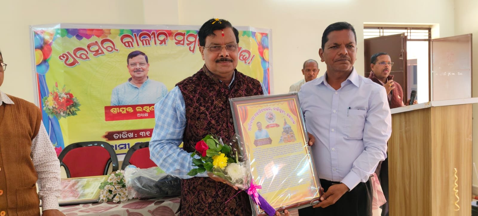 ଅଧ୍ଯକ୍ଷ ଲକ୍ଷ୍ମଣ ପାଳଙ୍କୁ ଅବସରକାଳୀନ ବିଦାୟ ସମ୍ବର୍ଦ୍ଧନା ।