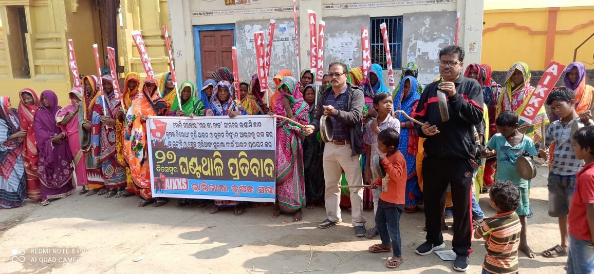 ଅନ୍ନଦାତାଙ୍କ ମନ କି ବାତ୍ ଶୁଣିବା ପାଇଁ କ୍ରାନ୍ତିକାରୀ କୃଷକ ସଭାର ଘଣ୍ଟଥାଳି ପ୍ରତିବାଦ ।