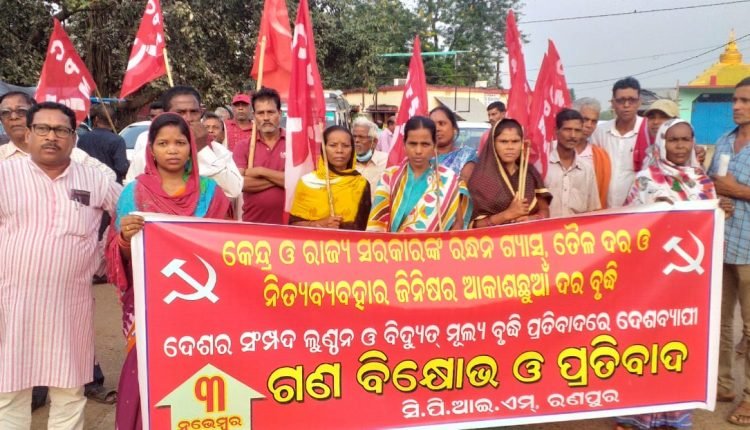 ରଣପୁର,୦୩/୧୧(ପିପିଟି):କେନ୍ଦ୍ର ଓ ରାଜ୍ୟ ସରକାରଙ୍କ ଆକାଶଛୁଆଁ ଦର ବୃଦ୍ଧି ବିରୋଧରେ ରଣପୁରରେ ସିପିଆଇ(ଏମ) ତରଫରୁ ଆଜି ଦେଶବ୍ୟାପୀ ଆନ୍ଦୋଳନ ପରିପ୍ରେକ୍ଷୀରେ ରଣପୁର ତହସିଲ ସମ୍ମୁଖରେ ବିକ୍ଷୋଭ କରି ମହାମହିମ ରାଷ୍ଟ୍ରପତିଙ୍କ ଉଦ୍ଦେଶ୍ୟରେ ଏକ ଦାବିପତ୍ର ପ୍ରଦାନ କରିଥିଲେ।ଏକ ଶୋଭାଯାତ୍ରା ରଣପୁର ପରିକ୍ରମା କରି ପଞ୍ଚୁଦୋଳ ପଡିଆରେ ରଣପୁର ଥାନା ସମ୍ମୁଖରେ ସୁରେଶ ସ୍ବାଇଁଙ୍କ ସଭାପତିତ୍ୱରେ ଏକ ପ୍ରତିବାଦ ସଭା ଆନୁଷ୍ଟିତ ହୋଇଥିଲା ।ଶହେ ଦିନରେ ଦର ଦାମ କମେଇ ଦେବା କଥାକହି ପେଟ୍ରୋଲ,ଡିଜେଲ, ରନ୍ଧନ ଗ୍ୟାସ ଓ ନିତ୍ୟ ବ୍ୟବହାର୍ଯ୍ୟ ଜିନିଷର ଦରବୃଦ୍ଧି କରି ସାଧାରଣ ଲୋକଙ୍କୁ ଶୋଷଣ କରୁ ଥିଲା ବେଳେ ପୁଞ୍ଜିପତି ଙ୍କୁ ସମସ୍ତ ଲାଭ ଦେଇ ଚାଲିଥିବାରୁ ବକ୍ତା ମାନେ ତୀବ୍ର ନିନ୍ଦା କରିଥିଲେ ଏବଂ ରାଜ୍ୟ ବିଜେଡି ନବୀନ ସରକାର ଟାଟା କମ୍ପାନୀ ହାତକୁ ବିଦୂତ ବିଭାଗକୁ ଟେକିଦେଇ ଉପଭୋକ୍ତାଙ୍କୁ ଲୁଟୁ ଛନ୍ତି ବୋଲି ବକ୍ତା ମାନେଅଭିଯୋଗ କରିଥିଲେ।ସରକାର ତୁରନ୍ତ ୧୯୫୫ ମସିହା ଆତ୍ୟାବଶ୍ୟକ ଆଇନ କୁ ପୁନର୍ବାର ପ୍ରଚଳନ କରି ଦରଦାମ ନିୟନ୍ତ୍ରଣ କରିବାକୁ ସଙ୍ଗଠନ ତରଫରୁ ଦାବୀ କରା ଯାଇଥିଲା। ନଚେତ ଭବିଷ୍ୟତରେ ଆନ୍ଦୋଳନ ତୀବ୍ରତର ହେବ ବୋଲି ସଂଗଠନ ତରଫରୁ ସତର୍କ କରାଯାଇଛି। ଏହି ପ୍ରତିବାଦ ସଭାରେ ହରିଶ୍ଚନ୍ଦ୍ର ମିଶ୍ର,ଧୁଶାସନ ଜେନା,ନିତ୍ୟାନନ୍ଦ ପରିଡା,ସବ୍ୟସାଚୀ ସେନାପତି,ଗଦା ଧର ପ୍ରଧାନ ,ବୁଲୁ ମହାନ୍ତି,ସଂଯୁକ୍ତା ସେଠି, ସୁକାନ୍ତି ଜେନା,କୁଳମଣି ପଲେଇ ଓ ମନୋଜ ପାତ୍ର ପ୍ରମ୍ମୁଖ ବକ୍ତବ୍ୟ ଦେଇଥିଲେ।