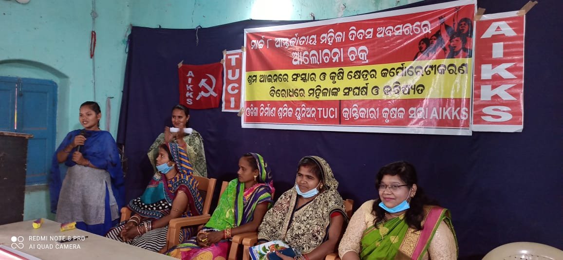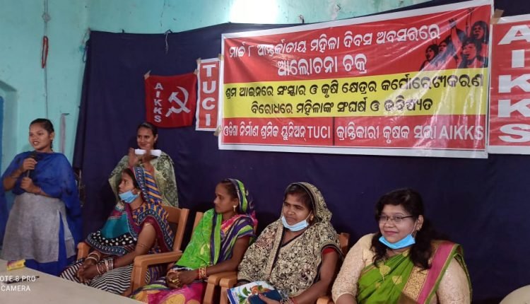 ଆନ୍ତର୍ଜାତିକ ମହିଳା ଦିବସ ଅବସରରେ ଶ୍ରମ ଆଇନରେ ସଂସ୍କାର ଓ କୃଷି କ୍ଷେତ୍ରର କର୍ପୋରେଟୀକରଣ ବିରୁଦ୍ଧରେ ମହିଳାଙ୍କ ସଂଘର୍ଷ ଓ ଭବିଷ୍ୟତ ଶୀର୍ଷକ ଆଲୋଚନା ଚକ୍ର ।