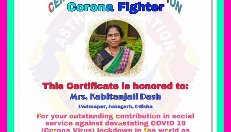 ପଦ୍ମପୁର,(ପିପିଟି ନ୍ଯୁଜ୍)୨୬/୦୫, ସଂପ୍ରତି କରୋନା ମହାମାରୀକୁ ଖାତିରନ କରି ଅନବରତ ସ୍ୱାସ୍ଥ୍ୟ ସେବା ଯୋଗାଇ ଆସୁଥିବା ପାଇକମାଳ ବ୍ଲକ ସ୍ଥିତ ପାହାଡ ପର୍ବତଘେରା ବୁକୁରାମୁଣ୍ଡା ଗୋଷ୍ଠୀ ସ୍ୱାସ୍ୟକେନ୍ଦ୍ର ରେ କାର୍ଯରତ ମହିଳାସ୍ୱାସ୍ଥ୍ୟ କର୍ମୀ କବିତାଞ୍ଜଳି ଦାଶ ଙ୍କ କାର୍ଯ୍ୟରେ ସନ୍ତୁଷ୍ଟ ହୋଇ ଭୂବନେଶ୍ୱର ସ୍ଥିତ ଆସ୍ଥା ଫାଉଣ୍ଡେସନ ପକ୍ଷରୁ କରୋନା ଫାଇଟର ଭାବେ ସମ୍ମାନୀତ କରିଛନ୍ତି । ଶ୍ରୀମତି ଦାଶ ତାଙ୍କ ଉପକେନ୍ଦ୍ର ଅଧିନସ୍ଥ ସମସ୍ତ ଗ୍ରାମ ମାନଙ୍କୁ ଯାଇ ଲୋକ ଙ୍କୁ ସାମାଜିକ ଦୂରତା ମାନି ଚଳିବା,ପ୍ରତ୍ୟକ ମୂହୁର୍ତ୍ତ ରେ ହାତକୁ ସାବୁନ ରେ ଧୋଇବା କେମିତି ତାହା ପ୍ରଦର୍ଶନ କରାଇ ଉପଯୁକ୍ତ ଶିକ୍ଷା ଦେବା ,ସବୁ ସମୟରେ ମାକ୍ସ ବ୍ୟବହାର କରିବା ,ଅଜଥାଟାରେ ଗହଳୀ ନକରିବାକୁ ଜନସାଧାରଣଙ୍କୁ ପ୍ରବର୍ତ୍ତାଇ ବାଟକୁ ଆଣିବାରେ ସଫଳ ହୋଇ ପାରିଛନ୍ତି । ଏଇ ଅବସର ରେ ତାଙ୍କୁ କରୋନା ଯୋଦ୍ଧା ଭାବେ ମନୋନୀତ କରି ଆସ୍ଥା ଫାଉଣ୍ଡେସନ୍ ତରଫରୁ ତାଙ୍କୁ ସମ୍ମାନୀତ କରିଛନ୍ତି ।