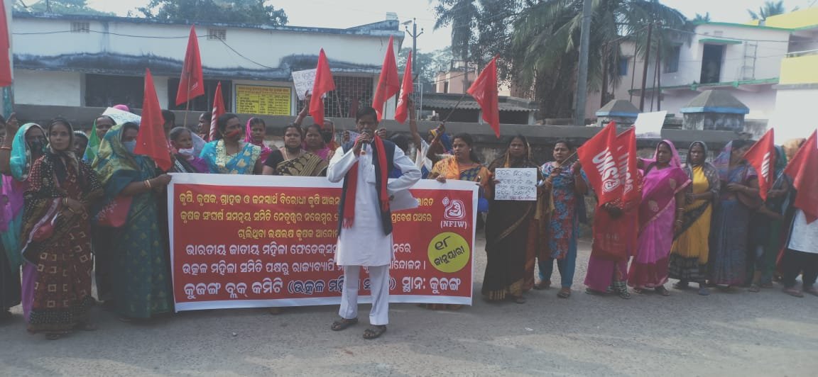 କୁଜଙ୍ଗ,୧୮/୦୧(ପିପିଟି); କୃଷି,କୃଷକ,ଗ୍ରାହକ ଓ ଜନସ୍ଵାର୍ଥ ଵିରୋଧୀ କୃଷି ଆଇନ ପ୍ରତ୍ଯାହାର ଦାଵିରେ ଅଖିଳ ଭାରତ କୃଷକ ସଂଘର୍ଷ ସମନ୍ଵୟ କମିଟି ନେତୃତ୍ଵରେ ନଭେମ୍ଵର ୨୭ରୁ ଦିଲ୍ଲୀର ସମସ୍ତ ପ୍ରଵେଶ ପଥରେ ଚାଲିଥିଵା ଲକ୍ଷ ଲକ୍ଷ କୃଷକଙ୍କ ଆନ୍ଦୋଳନ ସମର୍ଥନରେ ଭାରତୀୟ ଜାତୀୟ ମହିଳା ଫେଡେରେଶନ (NFIW) ଆହ୍ଵାନରେ ଉତ୍କଳ ମହିଳା ସମିତି ପକ୍ଷରୁ କୃଷକ ଆନ୍ଦୋଳନକୁ ସମର୍ଥନ ଜଣାଇଛନ୍ତି କୁଜଙ୍ଗ ଶାଖା ଉତ୍କଳ ମହିଳା ସମିତି । ଆଜି କୁଜଙ୍ଗ ଶାଖା ସଭାନେତ୍ରୀ ଜିନ୍ମୟୀ ସାହାଣୀଙ୍କ ନେତୃତ୍ବରେ ପ୍ରାୟ ଶତାଧିକ ମହିଳା ଏକତ୍ରିତ ହୋଇ କେନ୍ଦ୍ର ସରକାର ବିରୋଧରେ ସ୍ଲୋଗାନମାନ ଦେଇଥିଲେ । ଏହି ସଭାରେ ସିପିଆଇ ସହ ସଂପାଦକ ହୃଷିକେଶ ନାଥ ଯୋଗ ଦେଇ କେନ୍ଦ୍ର ସରକାରଙ୍କ କୃଷକ ତଥା ଖାଉଟି ବିରୋଧୀ ନୀତିକୁ ତୀବ୍ର ସମାଲୋଚନା କରିଥିଲେ । ଏଆଇଟିୟୁସି ଜିଲ୍ଲା ସଂପାଦକ ସୁବାସ ମହାପାତ୍ର ଦିଲ୍ଲୀ ସୀମାରେ ଦୀର୍ଘ ୫୯ଦିନ ଧରି ସଂଗ୍ରାମୀ କୃଷକମାନଙ୍କୁ ସେମାନଙ୍କ ପରିବାର ତଥା ସଂଗଠନ ଯୋଗାଇ ଦେଇଥିବା ମନୋବଳ ଓ ସାହାଯ୍ୟର ପ୍ରଶଂସା କରିବା ସହ ଏହି ଆନ୍ଦୋଳନରେ ମୃତ୍ୟୁ ବରଣ କରିଥିବା କୃଷକ ମାନଙ୍କ ପରିବାର ର ସଦସ୍ୟ ମାନଙ୍କ ପ୍ରତି ସମବେଦନା ଜ୍ଞାପନ କରିଛନ୍ତି । ଯୁବ ଓ ଛାତ୍ର ସଂଗଠନ ଏହି ଆନ୍ଦୋଳନରେ ସକ୍ରିୟ ଭାବେ ଅଂଶଗ୍ରହଣ କରୁଥିବାରୁ ରାଜ୍ୟ ଯୁବ ସଂଗଠକ ଅଜୟ ବେହେରା ସେମାନଙ୍କୁ ଆମ ପିପିଟି ନ୍ଯୁଜ୍ ମାଧ୍ୟମରେ ଧନ୍ୟବାଦ ଜଣାଇଛନ୍ତି ।
