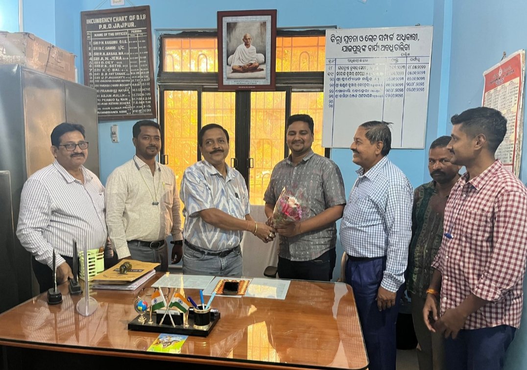 ଯାଜପୁର,୨୯/୧୧(ପିପିଟି): ସୂଚନା ଓ ଲୋକସମ୍ପର୍କ ବିଭାଗ ଆଦେଶ ଅନୁଯାୟୀ ଗତକାଲି ପୂର୍ବାହ୍ନରେ ସତ୍ୟବ୍ରତ ପାଣିଗ୍ରାହୀ ଜିଲ୍ଲା ସୂଚନା ଓ ଲୋକସମ୍ପର୍କ କାର୍ଯ୍ୟାଳୟ,ଯାଜପୁର ରେ ଉପଖଣ୍ଡ ସୂଚନା ଓ ଲୋକସମ୍ପର୍କ ଅଧିକାରୀ ଭାବେ କାର୍ଯ୍ୟରେ ଯୋଗଦାନ କରିଛନ୍ତି।ଜିଲ୍ଲା ସୂଚନା ଓ ଲୋକସମ୍ପର୍କ ଅଧିକାରୀ କାମିନୀ ରଞ୍ଜନ ପଟ୍ଟନାୟକ ଓ କାର୍ଯ୍ୟାଳୟର ସମସ୍ତ କର୍ମଚାରୀ ବରିଷ୍ଠ ରାଜସ୍ବ ସହାୟକ ଅମିୟ କୁମାର ତ୍ରିପାଠୀ,ଷ୍ଟୋର କିପର ସତ୍ୟଜିତ ନାୟକ,ସଂଚଳକ ଶାନ୍ତନୁ କୁମାର ସାହୁ,ରତିକାନ୍ତ ମହାନ୍ତି,ସାଗର ନାୟକ ଶ୍ରୀ ପାଣିଗ୍ରାହୀଙ୍କୁ ଫୁଲତୋଡ଼ା ଦେଇ ସ୍ୱାଗତ କରିଥିଲେ।ଜିଲ୍ଲା ସୂଚନା ଓ ଲୋକସମ୍ପର୍କ ଅଧିକାରୀ ଶ୍ରୀ ପାଣିଗ୍ରାହୀଙ୍କୁ ତାଙ୍କର ଦାୟିତ୍ୱ ସମ୍ପର୍କରେ ଅବଗତ କରାଇଥିଲେ। ପରେ ଶ୍ରୀ ପାଣିଗ୍ରାହୀ ଜିଲ୍ଲପାଳ ଅମ୍ବର କୁମାର କର ଓ ଅତିରିକ୍ତ ଜିଲ୍ଲାପାଳ ଯୁଧିଷ୍ଠିର ନାଏକଙ୍କୁ ସାକ୍ଷାତ କରିଥିଲେ।