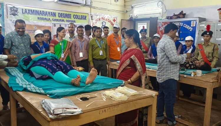 କୋଦଳା ,୧୧/୦୪(ପିପିଟି):ଶନିବାର ଦିନ କୋଦଳା ଲକ୍ଷ୍ମୀନାରାୟଣ ସ୍ନାତକ ମହାବିଦ୍ୟାଳୟ ପରିସରରେ ଓଡ଼ିଆ ପକ୍ଷ ଉପଲକ୍ଷେ ଅଧ୍ୟକ୍ଷ ରଘୁନାଥ ମୁଦୁଲି ଏବଂ ସଂଯୋଜିକା  ରଂଜୁବାଳା ନନ୍ଦଙ୍କ ତତ୍ତ୍ଵାବଧାନରେ ଏକ ରକ୍ତଦାନ ଶିବିର ଅନୁଷ୍ଠିତ ହୋଇଯାଇଛି ୲ ଉକ୍ତ ଶିବିରଟି ଲକ୍ଷ୍ମୀନାରାୟଣ ଉଚ୍ଚ ମାଧ୍ୟମିକ ବିଦ୍ୟାଳୟ ର ଅବସରପ୍ରାପ୍ତ ଅଧ୍ୟକ୍ଷ ଇ. ରାମଚନ୍ଦ୍ର ପାତ୍ର ଙ୍କ ଦ୍ଵାରା ଉଦଘାଟିତ ହୋଇଥିଲା ୲ ଏଥିରେ ନିମନ୍ତ୍ରିତ ଅତିଥି ଭାବେ କୋଦଳା ଏ.ଏସ . ଆଇ. ରାଜେନ୍ଦ୍ର କଅଁର, କୋଦଳା ବିଜ୍ଞାପିତ ଅଞ୍ଚଳ ପରିଷଦ ର ନଗର ପାଳ ସୂର୍ଯ୍ୟ ନାରାୟଣ ନାୟକ, ପୂରାତନ ଛାତ୍ର ତଥା ସାମ୍ବାଦିକ ସୂର୍ଯ୍ୟନାରାୟଣ ବଡୁ, ଯୁବ ରେଡକ୍ରସ ସଂଯୋଜକ  ଜଗଦୀଶ ଚନ୍ଦ୍ର ପାଲ୍, ମହାରାଜା କୃଷ୍ଣଚନ୍ଦ୍ର ଗଜପତି ଭେଷଜ ମହାବିଦ୍ୟାଳୟ, ବ୍ରହ୍ମପୁରର ଔଷଧ ବିତରଣ ବିଭାଗର ଡଃ ଅବିନାଶ ରଥ, ନସିଂ ଅଫିସର ରିଙ୍କୁ ସାହୁ ,ବୈଷୟିକ ଅଧିକାରୀ ଶ୍ରୀକାନ୍ତ ବସନ୍ତିଆ, ଭଗବାନ ଵରଡ ଓ ଗୋପାଳ କୃଷ୍ଣ ସାହୁ ଏମାନଙ୍କ ଉପସ୍ଥିତି ରେ ସ୍ଵେଚ୍ଛାକୃତ ରକ୍ତଦାନ ଶିବିର ଆୟୋଜନ କରାଯାଇଥିଲା୲ ଜାତୀୟ ସେବା ଯୋଜନା, ୟୁବ ରେଡକ୍ରସ ଓ ସମର ଶିକ୍ଷାର୍ଥୀ ବାହିନୀ ର ଆନୁକୁଲ୍ୟରେ ,ମହାବିଦ୍ୟାଳୟ ବିଭିନ୍ନ ବିଭାଗର ଅଧ୍ୟାପକ ଅଧ୍ୟାପିକା, ଅଣ ଶିକ୍ଷକ କର୍ମଚାରୀ ଙ୍କ ସହଯୋଗରେ ସ୍ଵେଚ୍ଛାସେବୀ ମାନଙ୍କ ଠାରୁ ୪୬ ୟୁନିଟ୍ ରକ୍ତ ସଂଗ୍ରହ କରାଯାଇଥିଲା ।