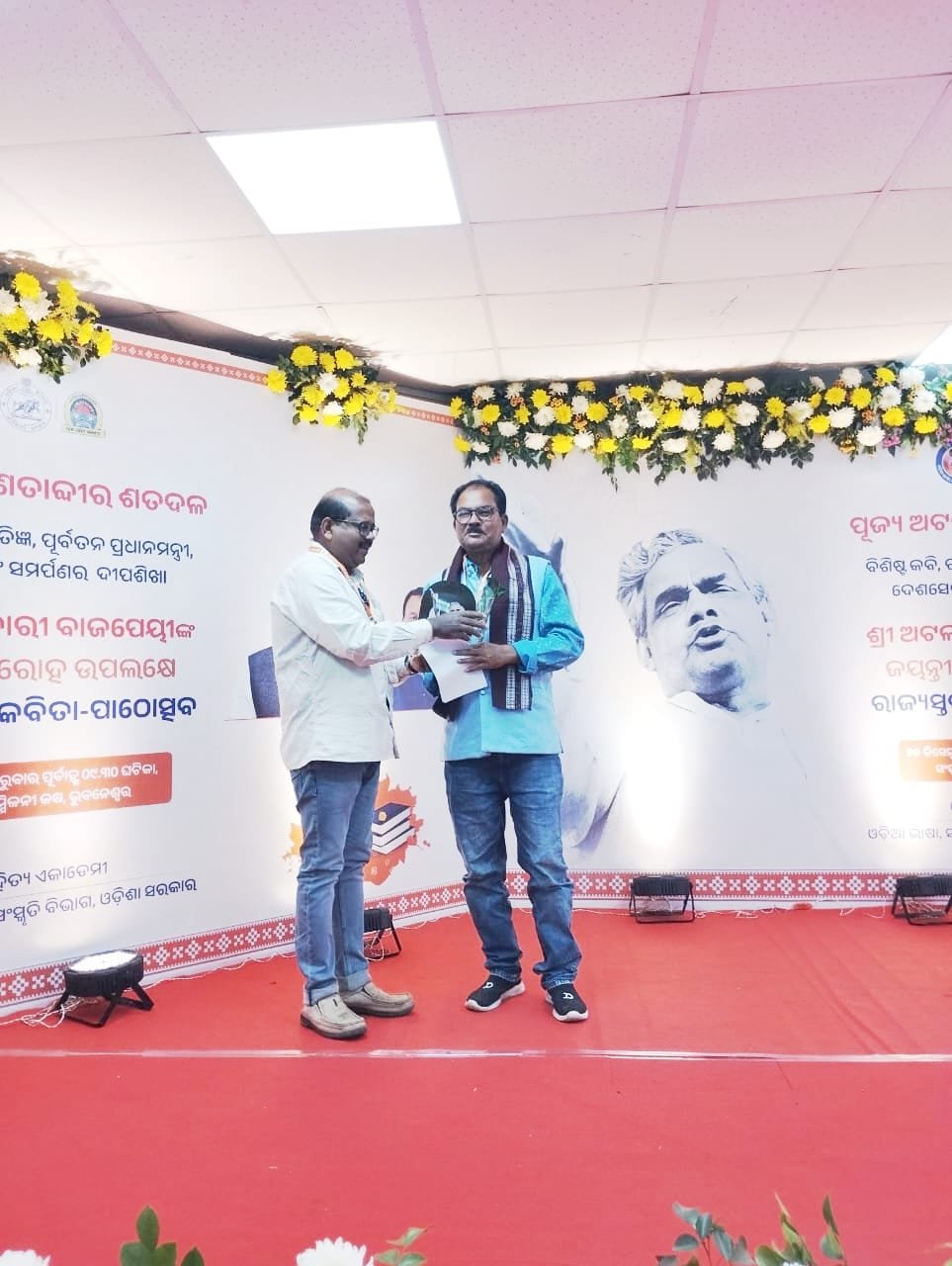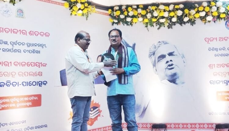 ମାଲକାନଗିରି,୨୫/୧୨(ପିପିଟି):ଆଜି ପୂର୍ବତନ ପ୍ରଧାନମନ୍ତ୍ରୀଙ୍କ ୧୦୦ ବର୍ଷ ଜନ୍ମ ଜୟନ୍ତୀ ଉପଲକ୍ଷେ ଓଡ଼ିଶା ସାହିତ୍ୟ ଏକାଡେମୀ, ଭୁବନେଶ୍ୱର ଦ୍ୱାରା ଆୟୋଜିତ କବିତା ପାଠୋତ୍ସବରେ ମାଲକାନଗିରି ମାଟିର ଜଣାଶୁଣା ସୁପ୍ରସିଦ୍ଧ କବି କେଶବ ଚନ୍ଦ୍ର ନାୟକ ଯୋଗଦେଇ ତାଙ୍କ ଦ୍ବାରା ରଚିତ “ପ୍ରମଣ୍ଯ ବାଜପେୟୀ” ଶୀର୍ଷକ କବିତା ପାଠ କରିଥିଲେ। ଓଡ଼ିଶା ସାହିତ୍ୟ ଏକାଡେମୀର ଉପସଚିବ ସଞ୍ଜୟ ଛୁଆଳସିଂହ ଶ୍ରୀ ନାୟକଙ୍କୁ ଉପଢୌକନ, ପୁଷ୍ପ ଗୁଛ ତଥା ଫଳକ ପ୍ରଦାନ କରି ସମ୍ମାନିତ କରିଥିଲେ। ଓଡ଼ିଶା ସାହିତ୍ୟ ଏକାଡେମୀର ସଚିବ ଡ଼ଃ ଚନ୍ଦ୍ର ଶେଖର ହୋତା ଉପସ୍ଥିତ ଥିଲେ। ଶ୍ରୀ ତାଙ୍କର କବିତା ପ୍ରଣମ୍ଯ ବାଜପେୟୀ ପାଠ କରି କବି ଓ ଶ୍ରୋତା ବନ୍ଧୁମାନଙ୍କୁ ମନ୍ତ୍ର ମୁଗ୍ଧ କରିଥିଲେ।