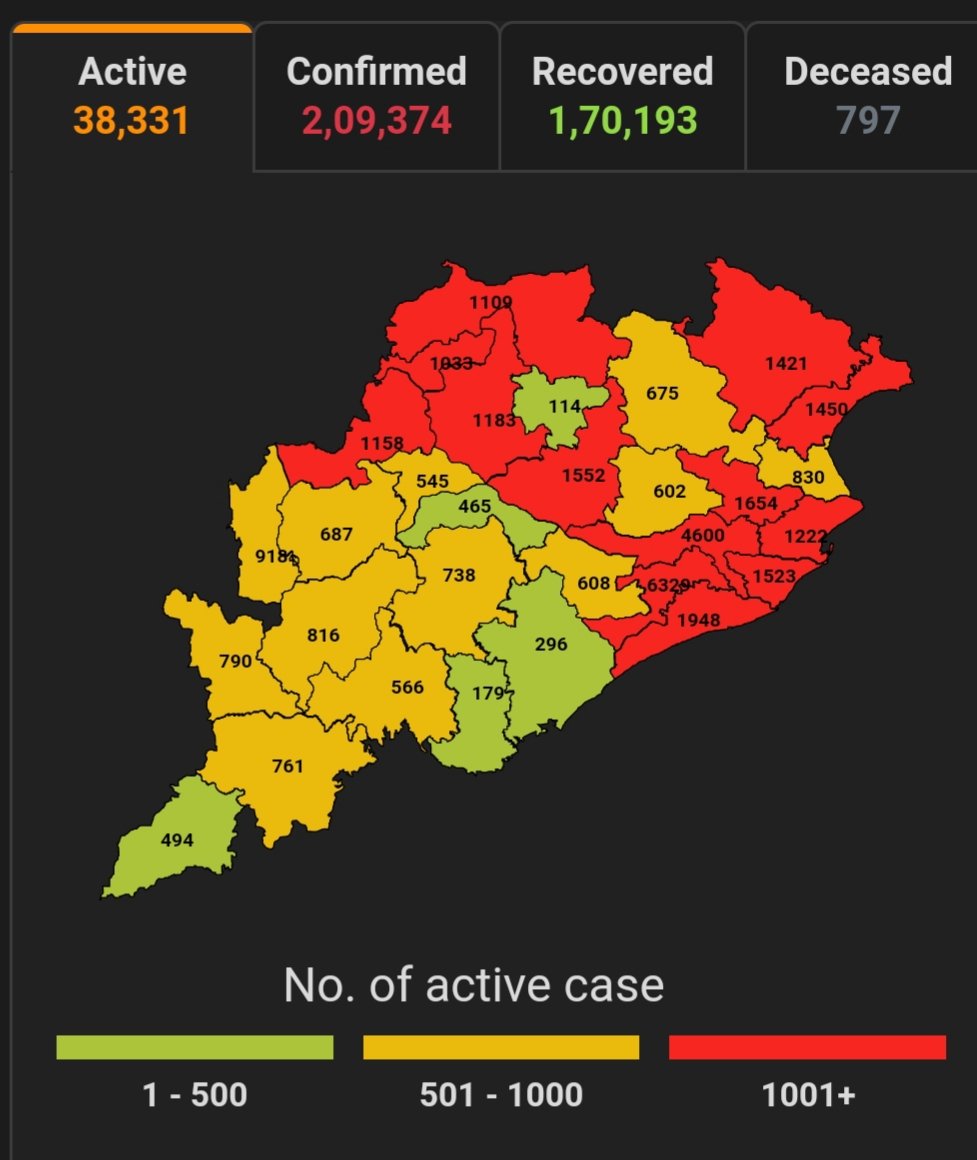 ଓଡିଶାରେ ସଂକ୍ରାମିତ ସଂଖ୍ୟା ୨,୦୯,୩୭୪,ମୃତ ସଂଖ୍ୟା ୭୯୭ ।