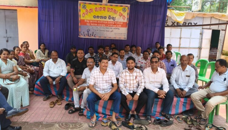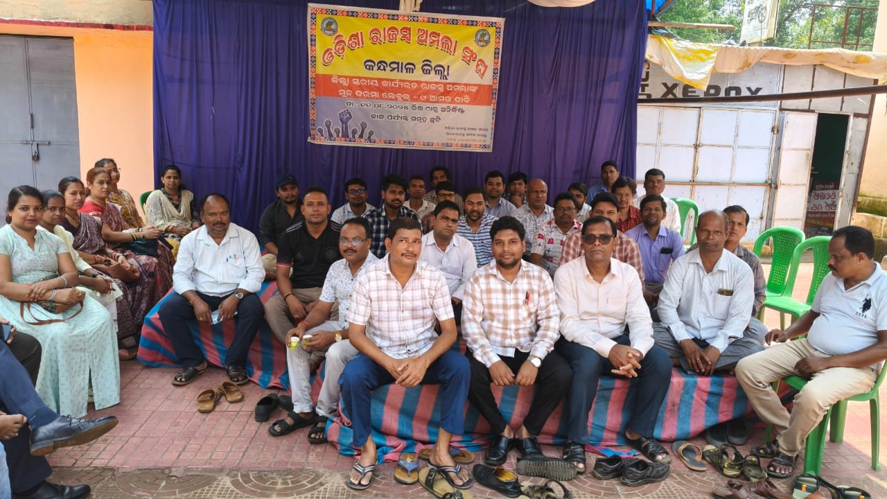 ଓଡିଶା ରାଜସ୍ୱ ଅମଲା ସଂଘ କନ୍ଧମାଳ ଜିଲ୍ଲା ଶାଖା ତରଫରୁ ୧୦ ଦଫା ଦାବୀ ନେଇ ସମୂହ ଛୁଟି ଓ ଧାରଣା ।