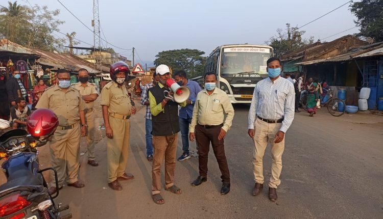ମାଲକାନଗିରି,୦୮/୦୧(ପିପିଟି): ଆଜି କୁଡୁମୁଲୁଗୁମ୍ମା ବଜାରରେ ସ୍ଥାନୀୟ ତହସିଲ ଓ ପୋଲିସ କର୍ମଚାରୀଙ୍କ ମିଳିତ ସହଯୋଗରେ ଓମିକ୍ରୋନ ସଂପର୍କରେ ସଚେତନତା ବର୍ତ୍ତା ପ୍ରଚାର କରାଯାଇଥିଲା। ଆଜିର ଏହି ଅଭିଯାନରେ ସ୍ଥାନୀୟ ତହସିଲଦାର ବିଜୟ ମାଣ୍ଡାଙ୍ଗୀ, ପୋଲିସ ଅଧିକାରୀ ଗିରିଶ ଚନ୍ଦ୍ର ମହାରଣା,ଏ.ଏସ୍.ଆଇ କମଳ ଲୋଚନ ନାୟକ, ରାଜସ୍ବ ନିରୀକ୍ଷଣ କପିଳାସ ନାୟକ, ସହ ଅନ୍ୟ ପୋଲିସ କର୍ମଚାରୀ ମାନେ ଯୋଗ ଦେଇଥିଲେ। ଡାକବାଜି ଯନ୍ତ୍ର ସାହାଯ୍ୟରେ ସମସ୍ତଙ୍କୁ ମାସ୍କ ପିନ୍ଧିବା,ଦୋକାନ ଆଗରେ ଛକି ଚିହ୍ନ ସୂଚିତ କରିବା, ଗହଳି ପୁର୍ଣ୍ଣ ସ୍ଥାନକୁ ନଯିବା, ପରସ୍ପର ଠାରୁ ଦୂରତ୍ଯ ବଜାୟ ରଖିବା,ସାବୁନ ଲଗେଇ ହାତ ଧୋଇବା ଭଳି ନୀତି ନିୟମ କୁ ମାନିବା ପାଇଁ ଅନୁରୋଧ କରାଯାଇଥିଲା। ଏହି ନୀତି ନିୟମର ଅଣଦେଖା କଲେ ପ୍ରଶାସନ ପକ୍ଷରୁ ଖିଲାପକାରୀ ମାନଙ୍କ ବିରୋଧରେ ଶୃଙ୍ଖଳାଗତ କାର୍ଯ୍ୟାନୁଷ୍ଠାନ ଗ୍ରହଣ କରାଯିବ ବୋଲି ତହସିଲଦାର ଶ୍ରୀ ମାଣ୍ଡା°ଗୀ ସତର୍କ କରାଇଥିଲେ।