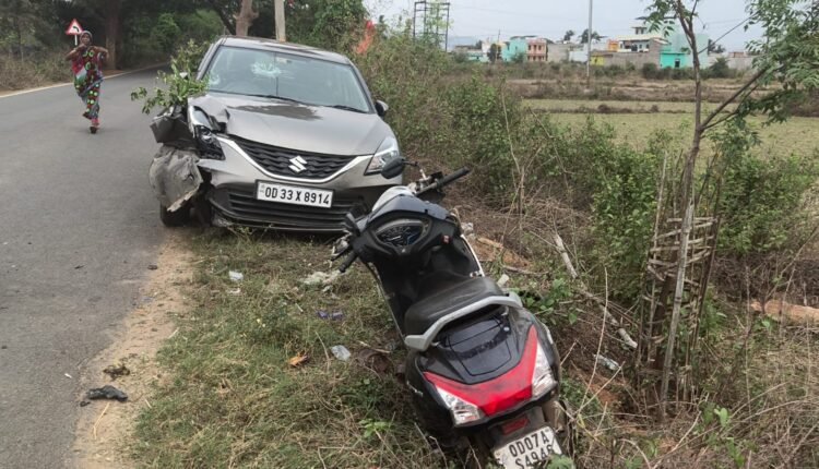 କଞ୍ଚଣା ଛକ ନିକଟରେ ସ୍କୁଟି କାର୍ ଧକ୍କା, ଜଣେ ଯୁବକ ଗୁରୁତର ।