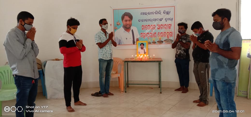 ମାଲକାନଗିରି,ତା:୦୪/୦୫(ପିପିଟି);ମାଲକାନଗିରି ଚିତ୍ରକରମାନଙ୍କ ଦ୍ବାରା ସଦର ମହକୁମା ସ୍ଥିତ ଏସି/ଏସଟି କର୍ମଚାରୀ ସଂଘ କକ୍ଷରେ କରୋନାରେ ମୃତ୍ଯୁ ବରଣ କରିଥିବା କଳା ଶିକ୍ଷକ ନାଗେଶ୍ବର ଆଚାରୀଙ୍କ ଅମର ଆତ୍ମାର ସଦଗତି କାମନା କରି ଏକ ଶୋକସଭା ଅନୁଷ୍ଠିତ ହୋଇଯାଇଛି । ପ୍ରାପ୍ତ ସୂଚନା ଅନୁସାରେ ଗତ ୩୧ ତାରିଖ ଦିନ ଗୋବିନ୍ଦପଲ୍ଲୀ ଗ୍ରାମର ସ୍ଵର୍ଗୀୟ ଆଦି ନାରାୟଣ ଅଚାରୀଙ୍କ ୩ୟ ସନ୍ତାନ ନାଗେଶ୍ଵର ଅଚାରୀ (୩୫) କରୋନାରେ ମୃତ୍ୟୁ ବରଣ କରଥିଲା ବେଳେ ତାଙ୍କୁ ତିନି ଦିନ ଧରି ସାଧାରଣ ଜ୍ଵର ,କାଶ ,ଥଣ୍ଡା ଲାଗି ରହିଥିଲା । ଫଳରେ ଗୋବିନ୍ଦପଲ୍ଲୀ ସରକାରୀ ଚିକିତ୍ସାଳୟ ଠାରେ ତାଙ୍କର କରୋନା ପରୀକ୍ଷଣ କରାଯାଥିଲା । ପରୀକ୍ଷାକୁ ତାଙ୍କୁ କରୋନା ସଂକ୍ରମିତ ହୋଇଥିବା ଜଣା ପଡିବା ପରେ ସ୍ଥାନୀୟ ଚିକିତ୍ସାଳୟରେ ଭର୍ତ୍ତି କରାଯାଇଥିଲା । ମାତ୍ର ଅକ୍ସିଜନ କମ ଥିବାରୁ ୩୧ ତାରିଖ ଦିନ ୧୨ଟା ସମୟରେ ମାଲକାନଗିରି କୋଭିଡ ହସ୍ପିଟାଲ ରେ ଭର୍ତ୍ତି କରା ଯାଇଥିବା ବେଳେ ସେହି ଦିନ ୨ଟା ୩୦ ମିନିଟରେ ମୃତ୍ୟୁ ଘଟିଥିଲା । ନାଗେଶ୍ବର ପିଲା ବେଳରୁ ହିଁ ଚିତ୍ର ଅଙ୍କନ ପ୍ରତି ରୁଚି ରଖି ଥିଲେ । ସେ କୁଡୁମୁଳୁଗୁମ୍ମା ଆଦର୍ଶ ବିଦ୍ୟାଳୟରେ କଳା ଶିକ୍ଷକ ଭାବେ ଚାକିରୀ କରି ଆସୁଥିଲେ । ଏହି ପରିପ୍ରେକ୍ଷୀରେ ମାଲକାନଗିରି ଜିଲ୍ଲା କଳାକାର ମାନଙ୍କ ଦ୍ଵାରା ନାଗେଶ୍ୱର ଅଚାରୀଙ୍କ ସ୍ବର୍ଗତ ଆତ୍ମାର ସଦଗତି ପାଇଁ ଆଜି ଶୋକସଭl ପାଳନ କରା ଯାଇଥିଲା । ଏହି ଶୋକ ସଭାରେ କେ. ଦେଶୀରାଜୁ ଆଚାରୀ(ରାଜା),ସମୀର, ବନମାଳୀ, କାଳିଆ, ଜଣ୍ଟୁ,ଅଶୋକ, ଅଭିଳାଶ ପାତ୍ର, କେ. ଶିବ ପ୍ରସାଦ ଏବଂ କାର୍ତ୍ତିକ ପ୍ରମୁଖ ଚିତ୍ରକରମାନେ ଉପସ୍ଥିତ ରହି ଥିଲେ ।