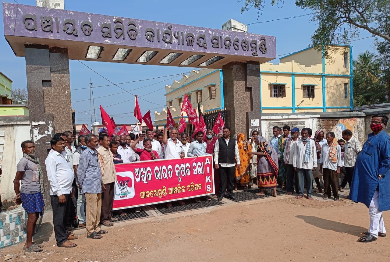 ସାନଖେମୁଣ୍ଡି,୧୧/୦୧(ପିପିଟି):କୃଷିଧ୍ବଂସ କାରୀ କଳା କୃଷି ଆଇନ ବିରୋଧରେ ଦିଲ୍ଲୀଚାଲ ଐତିହାସିକ କୃଷକ ଆନ୍ଦୋଳନକୁ ସମର୍ଥନ ଜଣାଇବା ସହ କୃଷିଜାତ ସାମଗ୍ରୀ ବିପଣନ ଓ କାରବାର ଆଇନ ୨୦୨୦ ରଦ୍ଦ କରିବା ଚୁକ୍ତିବଦ୍ଧ ଚାଷ ଓ ଠିକା ଚାଷ ଆଇନ ପ୍ରତ୍ୟାହାର ଅତ୍ୟାବଶକ ସାମଗ୍ରୀ ସଂଶୋଧନ ଆଇନ ପ୍ରତ୍ୟାହାର ସ୍ୱାମୀନାଥନ ଜାତୀୟ କୃଷକ କମିଶନ ସୁପାରିଶ ଲାଗୁ କରିବା ଓଡିଶାରେ ଧାନ କୁଇଣ୍ଟାଲ ପିଛା ୩୦୦୦ଟଙ୍କା ପ୍ରଦାନ ଆଦି ପ୍ରମୁଖ ଦାବୀ ନେଇ ଅଖିଳ ଭାରତ କୃଷକ ସଂଘର୍ଷ ସମନ୍ୱୟ ସମିତି ଡ଼ାକରା ରେ ଅଖିଳ ଭାରତ କୃଷକ ସଭା ସାନଖେମୁଣ୍ଡି ଅଞ୍ଚଳ କମିଟି ପକ୍ଷରୁ ସାନଖେମୁଣ୍ଡି ବ୍ଲକ କାର୍ଯ୍ୟାଳୟ ସମ୍ମୁଖରେ ବିକ୍ଷୋଭ କାର୍ଯ୍ୟକ୍ରମ ଅନୁଷ୍ଠିତ ହୋଇଛି ।ପାଟପୁର ଗାନ୍ଧିଛକ ଠାରେ ମହାତ୍ମାଗାନ୍ଧୀଙ୍କ ପ୍ରତିମୂର୍ତ୍ତିରେ ପୁଷ୍ପମାଲ୍ୟ ପ୍ରଦାନ ସହ ଶତାଧିକ କର୍ମୀ ଶପଥପାଠ କରିବା ସହ ଶୋଭାଯାତ୍ରାରେ ବ୍ଲକ କାର୍ଯ୍ୟାଳୟ ଠାରେ କୈଳାଶ ପାତ୍ରଙ୍କ ସଭାପତିତ୍ବରେ ପ୍ରତିବାଦ ସଭା ଅନୁଷ୍ଠିତ ହୋଇଥିଲା ଏଆଇକେଏସ ଜିଲ୍ଲା ସମ୍ପାଦକ ରାଜୀବ ଲୋଚନ ପଣ୍ଡା ସିପିଆଇ ଜିଲ୍ଲା ସମ୍ପାଦକ ପ୍ରକାଶ ପାତ୍ର ଅଖିଳଭାରତ ଯୁବସଂଘ ରାଜ୍ୟ ସମ୍ପାଦକ ପ୍ରଦୀପ ସେଠି, ଶ୍ରମିକ ନେତା ଅଳକନାଥ, ମିଶ୍ର କୃଷକ ନେତା ଅନନ୍ତ ମହାଙ୍କୁଡ, ସୁଶାନ୍ତ ସ୍ୱାଇଁ, ଭଗବାନ ରାଉତ, ଅଶୋକ କୁମାର ଜେନା, ବୃନ୍ଦାବନ ବିଶୋଇ, ଏ କୃଷ୍ଣମୂର୍ତ୍ତି ପାତ୍ର, ପାଣ ସେଠି, ଏ ନରେନ୍ଦ୍ର ରେଡ଼ି, ରବି ବିଶୋଇ ପ୍ରମୁଖ କେନ୍ଦ୍ର ମୋଦି ସରକାରର ପ୍ରଣୀତ ୩ଟି କଳା କୃଷି ଆଇନର ତୀବ୍ର ପ୍ରତିବାଦ ସହ ତୁରନ୍ତ ବାତିଲ ଦାବୀ କରିଥିଲେ । ସାନଖେମୁଣ୍ଡି ଅଂଚଳରେ ଚାଷୀଙ୍କ ଧାନ ସରକାରୀ ମଣ୍ଡି ରେ ବିକ୍ରି ନହେବାର ପ୍ରତିବାଦ ସହ ତୁରନ୍ତ ମଣ୍ଡି ସମସ୍ୟା ସମାଧାନ କରିବାକୁ ଦାବୀ କରିଥିଲେ । କର୍ପୋରେଟ ପୁଞ୍ଜିପତି ଅମ୍ବାନୀ ଅଦାନୀ ପ୍ରୀତି ରେ କୃଷି ବ୍ୟବସ୍ଥା ଧ୍ବଂସର ପ୍ରତିବାଦ ସହ ଚାଷୀ ସମସ୍ୟା ସମାଧାନ ଓକଳା କୃଷି ଆଇନ ପ୍ରତ୍ୟାହାର ନେଇ ବ୍ଲକ ବିଡ଼ିଓ ଗାୟତ୍ରୀ ଦତ୍ତ ନାୟକ ଙ୍କୁ ରାଷ୍ଟ୍ରପତିଙ୍କ ଉଦ୍ଧେଶ୍ୟ ରେ ସ୍ମାରକପତ୍ର ପ୍ରଦାନ କରାଯାଇଥିଲା ।