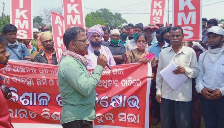 କଳା କୃଷି ଆଇନ ପ୍ରତ୍ୟାହାର ଦାବିରେ ଗଣ ବିକ୍ଷୋଭ।