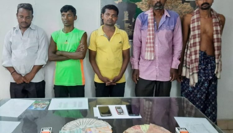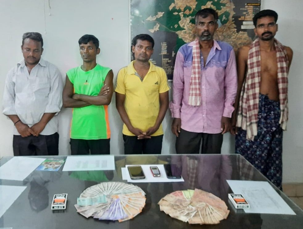 ଭଞ୍ଜନଗର,୧୮/୧୦(ପିପିଟି);ଭଞ୍ଜନଗର ନିକଟ କୁଶପଲ୍ଲୀ ଗ୍ରାମରେ ଜୁଆ ଖେଳ ଚାଲିଥିବା ଖବର ପାଇ ପୋଲିସ ସେହି ଜୁଆ ଆଡ୍ଡା ଉପରେ ରବିବାର ଅଚାନକ ଚଢ଼ାଉ କରି ସେଠାରୁ ୫ଜଣ ଜୁଆଡ଼ିଙ୍କୁ ଗିରଫ କରିବା ସହ ସେମାମାନଙ୍କ ଠାରୁ ମୋଟ ୧୩,୦୧୦ ଟଙ୍କା,୩ଟି ମୋବାଇଲ ଫୋନ ଓ ୨ପ୍ୟାକେଟ ତାସ ଜବତ ହୋଇଥିବା ଥାନା ଅଧିକାରୀ ସୁଦୀପ୍ତ କୁମାର ସାହୁ କହିଛନ୍ତି।