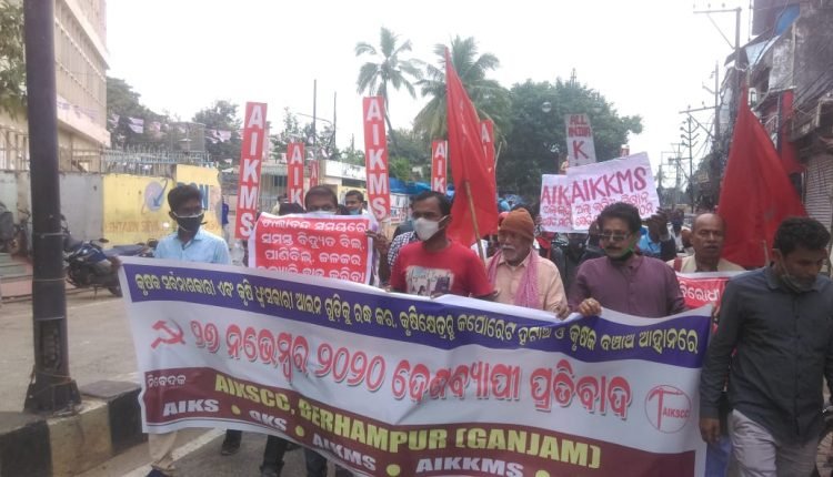 ବ୍ରହ୍ମପୁର, ୨୭/୧୧(ପିପିଟି); ମୋଦି ସରକାରର କୃଷି ଓ କୃଷକ ସର୍ବନାଶ କାରୀ କୃଷି ଆଇନର ପ୍ରତ୍ୟାହାର, ଜନ ବିରୋଧୀ ପ୍ରସ୍ତାବିତ ବିଦ୍ୟୁତ ସଂଶୋଧନ ବିଲର ବାତିଲ ଦାବିରେ ତଥା ଦିଲ୍ଲୀ ଯାଉଥିବା କୄଷକମାନଙ୍କ ଉପରେ ହରିଆନା, ଉତ୍ତର ପ୍ରଦେଶର ବିଜେପି ସରକାରଙ୍କ ପକ୍ଷରୁ ବେଆଇନ ଗିରଫଦାରୀ, ଲାଠି ଓ ପାଣିମାଡ ପରି ଦମନକାରୀ ପଦକ୍ଷେପ ବିରୋଧରେ ଆଜି ଦେଶବ୍ୟାପୀ କୃଷକମାନଙ୍କ ପ୍ରତିବାଦ ଆନ୍ଦୋଳନର ଡାକରା ଦିଆଯାଇଥିଲା । ଏହି ପରିପ୍ରେକ୍ଷୀରେ କୃଷକ ସଂଗଠନମାନଙ୍କ ସର୍ବ ଭାରତୀୟ ମଞ୍ଚ , ଅଖିଳ ଭାରତ କୃଷକ ସଂଘ ସମନ୍ଵୟ ସମିତି (ଏଆଇକେଏସସିସି) ପକ୍ଷରୁ ଆଜି ବ୍ରହ୍ମପୁର ସ୍ଥିତ ମୁଖ୍ୟ ଡାକ କାର୍ଯ୍ୟାଳୟ ସମ୍ମୁଖରେ ବିକ୍ଷୋଭ ପ୍ରଦର୍ଶନ ଓ ପିକେଟିଙ୍ଗ ସଂଗଠିତ ହୋଇଯାଇଛି । ଏଆଇକେଏସସିସି ସଂଲଗ୍ନ ଜିଲ୍ଲାର ପାଞ୍ଚଟି କୃଷକ ସଂଗଠନ ପକ୍ଷରୁ ମିଳିତ ଭାବେ ଆୟୋଜିତ ଏହି କାର୍ଯ୍ୟକ୍ରମରେ ଦିଲ୍ଲୀରେ କୃଷକମାନଙ୍କର ଆନ୍ଦୋଳନକୁ ଦମନ କରିବା ପାଈଁ ପୋଲିସ ର ଲାଠି ଚାର୍ଜ, ଲୁହ ବୁହା ଗ୍ୟାସ ପ୍ରୟୋଗ କରିବା, ପାଣିମାଡ କାର୍ଯ୍ୟ କୁ ତୀବ୍ର ନିନ୍ଦା କରାଯାଇଥିଲା । ଦେଶୀ ବିଦେଶୀ ବୄହତ୍ତ କର୍ପୋରେଟଙ୍କ ସ୍ଵାର୍ଥରେ ଦେଶର କୃଷି ଓ କୃଷକର ସର୍ବନାଶକାରୀ ତିନୋଟି କୃଷି ଆଇନ ଯଥା ଅତ୍ୟାବଶ୍ୟକୀୟ ସାମଗ୍ରୀ ସଂଶୋଧନ ଆଇନ – ୨୦୨୦, ମଣ୍ଡୀ ଆଇନ – ୨୦୨୦ ଏବଂ ଠିକା ଚାଷ ଆଇନ – ୨୦୨୦କୁ ରଦ୍ଦ କରିବାକୁ ଏବଂ ଜନବିରୋଧୀ ପ୍ରସ୍ତାବିତ ସଂଶୋଧିତ ବିଦ୍ୟୁତ ବିଲକୁ ବାତିଲ କରିବାକୁ ଦାବି କରିଥିଲେ । ବିକ୍ଷୋଭ ପୁର୍ବରୁ କୃଷକମାନଙ୍କ ଏକ ମିଳିତ ପଟୁଆର ସ୍ଥାନୀୟ ଗୋପବନ୍ଧୁ ଛକ ଠାରୁ ବାହାରି ସହର ପରିକ୍ରମା କରିବା ସହ ପୁରୁଣା ବସଷ୍ଟାଣ୍ଡ ଠାରେ ପହଞ୍ଚିଥିଲା । ଆଜିର କାର୍ଯ୍ୟକ୍ରମରେ ଅଖିଳ ଭାରତ କିଶାନ ମଜଦୁର ସଭାର ଜାତୀୟ ସଂପାଦକ ଭାଲଚନ୍ଦ୍ର ଷଡ଼ଙ୍ଗୀ, ରାଜ୍ୟ ସଂପାଦକ ପ୍ରତାପ ନାୟକ, ଅଖିଳ ଭାରତ କିଶାନ ସଭର ଜିଲ୍ଲା ସଭାପତି ଶ୍ରୀହର୍ଷ ରଥ, ନୀଳକଣ୍ଠ ଦାସ, ଶ୍ରମିକ ନେତା ପ୍ରକାଶ ପାତ୍ର, ସିମାଞ୍ଚଳ ସାହୁ ଓଡିଶା କୃଷକ ସଭା ଜିଲ୍ଲା ନେତା ବସନ୍ତ ନନ୍ଦ, ଗୋପାଳ ପାଣିଗ୍ରାହୀ ବାବୁଲ ନାୟକ, ବିଜୟ ବିଷୋୟୀ, ଯୁଧିଷ୍ଟିର ବେହେରା, କୃଷ୍ଣମୁର୍ତ୍ତି ପାତ୍ର, କ୍ଷେତ ମୁଲିଆ ୟୁନିଅନ ଜିଲ୍ଲା ନେତା ବିଦ୍ୟାଧର ଜେନା, କିଶାନ ମଜଦୁର ସଭାର ଜିଲ୍ଲା କମିଟି ସଭ୍ୟ ଲଡ଼ୁ କିଶୋର ଡାକୁଆ, ନାରାୟଣ ବିଷୋୟୀ, ସନ୍ତୋଷ ଗୌଡ, ଏଆଇକେକେଏମଏସ୍ ନେତା ଉଦ୍ଧବ ମହାଙ୍କୁଡ, ପପୁନ ସାହୁ, ଏଆଇକେକେଏସ୍ ରାଜ୍ୟ ସମ୍ପାଦକ ଶଙ୍କର ସାହୁ, ପି. ପାର୍ବତୀ ପ୍ରମୁଖ ନେତୃତ୍ଵ ନେଇଥିଲେ ।
