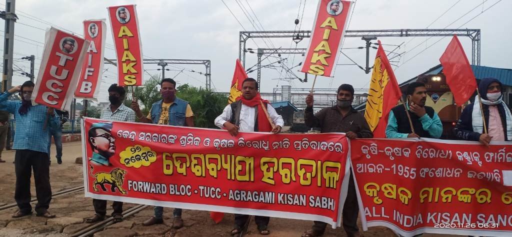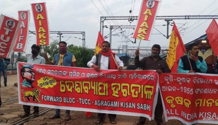 କେନ୍ଦ୍ର ସରକାରଙ୍କ କୃଷକ ଓ ଶ୍ରମିକ ବିରୋଧୀ ନୀତି ପ୍ରତିବାଦରେ ଦେଶବ୍ୟାପି ହରତାଳ ।