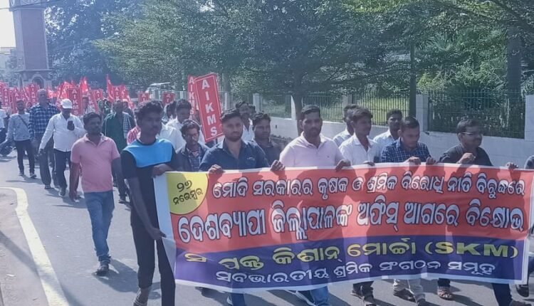 କେନ୍ଦ୍ର ସରକାରଙ୍କ ଜନ ବିରୋଧି ନୀତି ବିରୁଦ୍ଧରେ କୃଷକ ଓ ଶ୍ରମିକ ସଂଗଠନଗୁଡ଼ିକ ପକ୍ଷରୁ ଜିଲ୍ଲାପାଳଙ୍କ କାର୍ଯ୍ୟାଳୟ ସମ୍ମୁଖରେ ବିକ୍ଷୋଭ ।