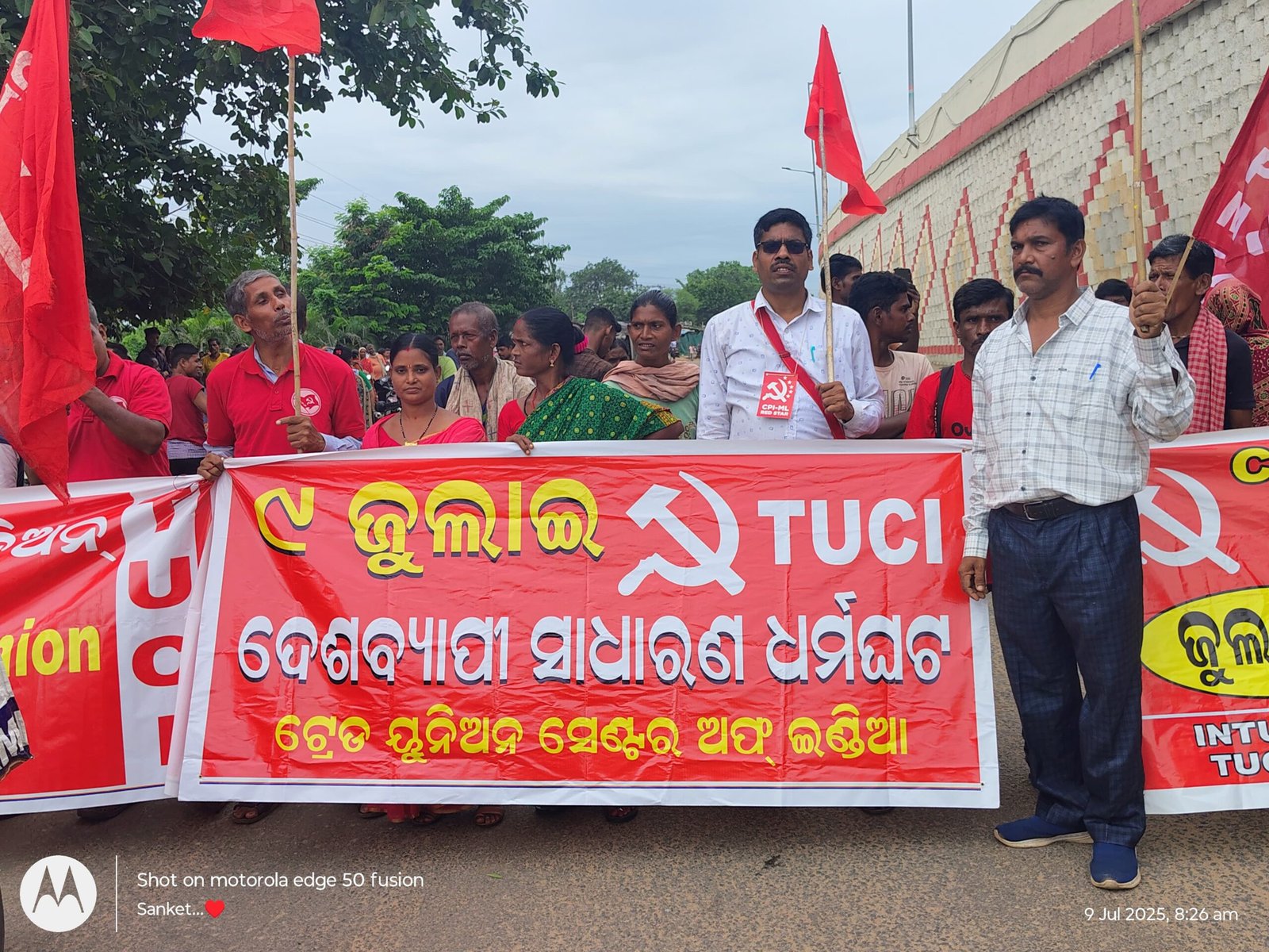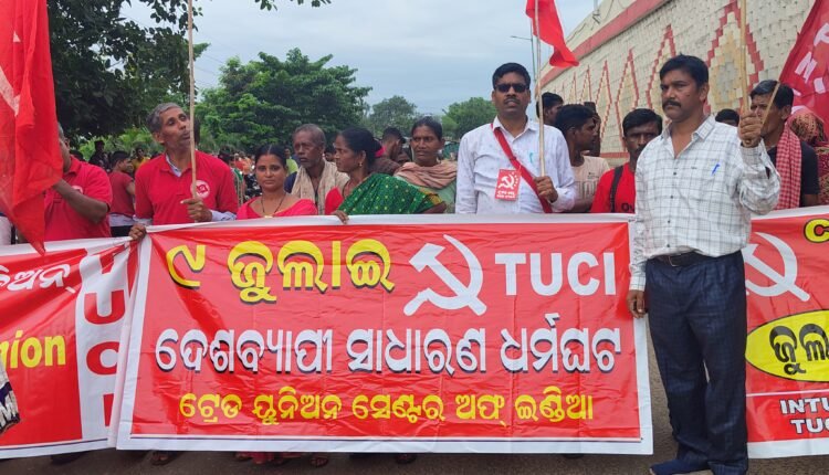 ଭୁବନେଶ୍ୱର,୦୯/୦୭(ପିପିଟି):ଟ୍ରେଡ ୟୁନିଅନ ସେଣ୍ଟର ଅଫ୍ ଇଣ୍ଡିଆ ଓଡ଼ିଶା ରାଜ୍ୟ କମିଟି ନେତୃତ୍ବରେ ଓଡିଶା ନିର୍ମାଣ ଶ୍ରମିକ ୟୁନିଅନ, ଘରୋଇ ମହିଳା ଶ୍ରମିକ ୟୁନିଅନ, ଓଡ଼ିଶା ମନରେଗା ଶ୍ରମିକ ୟୁନିଅନ, ସଂଗ୍ରାମୀ ଶ୍ରମିକ ୟୁନିଅନ ପକ୍ଷରୁ ରାଜ୍ୟବ୍ୟାପି ସାଧାରଣ ଧର୍ମଘଟକୁ ସଫଳ କରିବା ପାଇଁ ସମସ୍ତ ପ୍ରସ୍ତୁତି କରି ବ୍ୟାପକ ପିକେଟିଂ ମାଧ୍ୟମରେ ଅଫିସ,ଦପ୍ତର,ବ୍ୟାଙ୍କ,ସ୍କୁଲ ଆଦି ବନ୍ଦ କରିଥିଲେ। ଶ୍ରମିକ ସଭା, ରାସ୍ତା ଅବରୋଧ ଆଦି ହୋଇଥିଲା। ଭୁବନେଶ୍ୱର ଆଇଗିଣିଆ ଛକରେ ଟ୍ରେଡ ୟୂନିଅନ ସେଣ୍ଟର ଅଫ୍ ଇଣ୍ଡିଆ ର ରାଜ୍ୟ ସମ୍ପାଦକ ଶଙ୍କର ଇନକିଲାବ ଏବଂ ସଭାପତି ବିଚିତ୍ର ପାତ୍ରଙ୍କ ନେତୃତ୍ବରେ ଶହଶହ ଶ୍ରମିକ ଜାତୀୟ ରାଜପଥ ବହୁ ସମୟଧରି ଅବରୋଧ କରି ଗିରଫ ହୋଇଥିଲେ। ଏଠାରେ ଟିୟୁସିଆଇ ନେତା ଶଙ୍କର ଇନକିଲାବ ଏବଂ ବିଚିତ୍ରଙ୍କୁ ଗିରଫ କରିବା ପାଇଁ ପୋଲିସ ନାକେଦମ୍ ହେବା ସହ ଶ୍ରମିକମାନଙ୍କ ତାତି ଉଠିଥିଲେ । ସେହିପରି କ୍ରାଉନ ହୋଟେଲ ସମ୍ମୁଖ ଜାତୀୟ ରାଜପଥ, ୟୁନିଟ୍ ୮ ରେ ବିକ୍ଷୋଭ କରି ସୋନି ନାୟକ,ଟିକିନା ସ୍ବାଇଁଙ୍କ ନେତୃତ୍ବରେ ଶହ ଶହ ଘରୋଇ ମହିଳା ଶ୍ରମିକ ସାମିଲ ହୋଇଥିଲେ। ୬୦ ରୁ ଉର୍ଦ୍ଧ୍ବ ଘରୋଇ ମହିଳା ଶ୍ରମିକ ଗିରଫ୍ ହୋଇଥିଲେ। ମନରେଗା ଶ୍ରମିକମାନେ ହାତକୁ କାମ,ବଞ୍ଚିବା ଯୋଗ୍ୟ ମଜୁରୀ ଏବଂ ନିର୍ଧାରିତ ସର୍ବନିମ୍ନ ମଜୁରୀ ଠାରୁ କମ୍ ପ୍ରଦାନ କଲେ ଦୃଢ଼ କାର୍ଯ୍ୟାନୁଷ୍ଠାନ ଆଦି ଦାବିରେ ଶହ ଶହ ଶ୍ରମିକ ପି ପାର୍ବତୀ ଓ ଟୁନା ମଲ୍ଲିକଙ୍କ ନେତୃତ୍ବରେ ଗଞ୍ଜାମ ଜିଲ୍ଲାରେ ସାମିଲ୍ ହୋଇଥିଲେ । ପୂରୀ ରେ ସୀମାଞ୍ଚଳ ଦାଶ ଓ କୃଷ୍ଣ ମୋହନ ପ୍ରଧାନ, ନୂଆପଡ଼ା ଜିଲ୍ଲାରେ ଗୋବିନ୍ଦରାମ ପ୍ରଧାନ ଆଦି ନେତୃତ୍ବ ନେଇଥିଲେ। କର୍ପୋରେଟ୍ ସପକ୍ଷ ଶ୍ରମ କୋଡ୍ କୁ ବିରୋଧ କରି ସର୍ବଭାରତୀୟ ଶ୍ରମିକ ଧର୍ମଘଟରେ ହଜାର ହଜାର ଶ୍ରମିକ ଅଂଶଗ୍ରହଣ କରି ସଶ୍ରମିକ ବିରୋଧୀ ଫାସିବାଦୀ ମୋଦି ସରକାର ଡାଉନ୍ ଡାଉନ୍ ଭଳି ଶକ୍ତିଶାଳୀ ସ୍ଲୋଗାନ ଦେଇଥିଲେ।