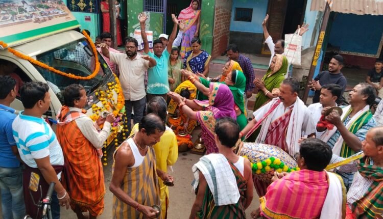 କୋଦଳା,୦୯/୦୧(ପିପିଟି): କୋଦଳା ବିଜ୍ଞାପିତ ଅଞ୍ଚଳ ପରିଷଦ ପ୍ରଶାସନ ସହଯୋଗରେ ପ୍ରତ୍ୟେକ ଘରୁ” ଗୁଆ ଗୋଟେକୁ ଚାଉଳ ମୁଠେ “ସଂଗ୍ରହ କରିବା ପାଇଁ ଜୟ ଜଗନ୍ନାଥ ଅର୍ପଣ ରଥ ଦ୍ଵିତୀୟ ଦିନରେ ପଦାର୍ପଣ କରିଛି । ମଙ୍ଗଳବାର ଦ୍ଵିତୀୟ ଦିନରେ କୋଦଳା ବିଜେ ଜଗନ୍ନାଥ ମନ୍ଦିର ସମ୍ମୁଖରୁ ଅର୍ପଣ ରଥ ପୂଜାର୍ଚନା କରି କୀର୍ତ୍ତନ ମଣ୍ଡଳୀ ଘଣ୍ଟ ଘଣ୍ଟି,ହୁଳହୁଳି ଓ ହରିବୋଲ ଧ୍ୱନି ରେ ବାହାରିଥିଲେ ।ପ୍ରଥମେ ବାଇଗଣିଆ ସାହି ଦେଇ, ବଡ଼ ଖଡୁରା ସାହି, ଖଡୁରା ନୁଆସାହି, ଗୌଡ଼ସାହି, ବସଷ୍ଟାଣ୍ଡ ପରିବା ବଜାର, ଖଦାଳ ସାହି, କରଣ ସାହି, ଗୋହିରିନାଳ ସାହି, ଦଶବଖାରା, ଡେରାସାହି, କୁମୁଟି ସାହି ଓ ଶକ୍ତିନଗର ଦେଇ ପୁଣି ଜଗନ୍ନାଥ ମନ୍ଦିର କୁ ଫେରିଥିଲେ । ପ୍ରତ୍ୟେକ ସାହିରେ ମହିଳାମାନେ ରଥକୁ ବନ୍ଦାପନା କରି ପୁଷ୍ପ ଓ ହୁଳହୁଳି ଦେଇ ଭବ୍ୟ ସ୍ୱାଗତ ସମ୍ବର୍ଦ୍ଧନା ଜଣାଉଥିବା ଦେଖିବାକୁ ମିଳିଥିଲା । ପ୍ରତ୍ୟେକ ପରିବାର ମୁଠେ ଚାଉଳ ଓ ଗୋଟେ ଗୁଆ ମହାପ୍ରଭୁଙ୍କ ଉଦ୍ଦେଶ୍ୟରେ ଦେଉଥିବାର ଦେଖାଦେଇଛି । ଆଜିର ଏହି ଭବ୍ୟ କାର୍ଯ୍ୟକ୍ରମରେ ଏନ୍ଏସି ର କାଉନସିଲର,କର୍ମକର୍ତ୍ତା ସମେତ ବିଜୁ ଜନତା ଦଳର ସମସ୍ତ କର୍ମକର୍ତ୍ତା,କର୍ମୀ, ମହିଳା ସଙ୍ଘ ଓ ଜନ ସାଧାରଣ ଉପସ୍ଥିତ ଥିଲେ ।