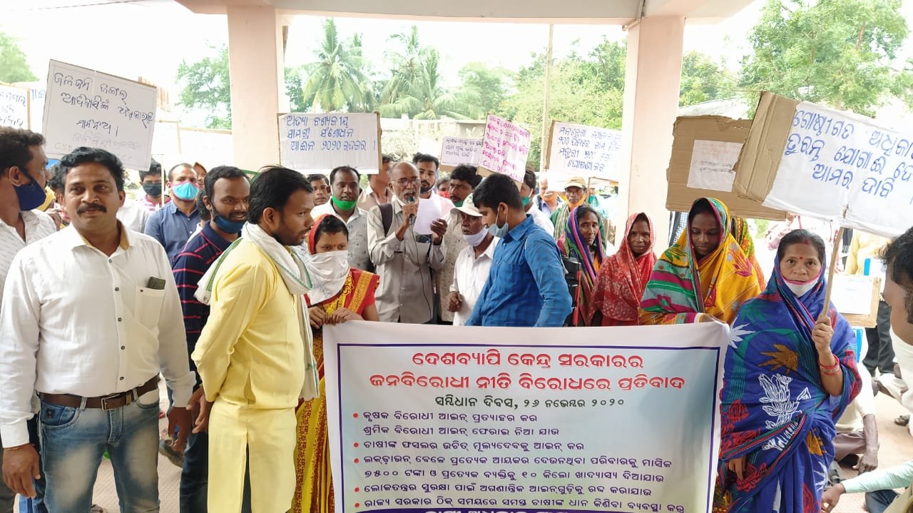 କୋଦଳା,୨୬/୧୧(ପିପିଟି); କୃଷି , କୃଷକ ଓ ଖାଉଟି ବିରୋଧୀ ଆଇନ ଗୁଡିକ ପ୍ରତ୍ୟାହାର କରିବା ଦାବୀ ନେଇ ଅଖିଳଭାରତ କୃଷକ ସଂଘର୍ଷ ସମନ୍ବୟ ସମିତି ଡାକରା ରେ ହେଉଥିବା ରାଷ୍ଟ୍ରବ୍ୟାପି ହରତାଳ ଓ ପ୍ରତିବାଦ ସଭାକୁ ସମ୍ମାନ ଜଣାଇ ବେଗୁନିଆପଡ଼ା ବ୍ଲକ ଚାଷୀ ଅଧିକାର ସଂଗ୍ରାମ ମଞ୍ଚ. ରୁଷୀକୂଲ୍ୟା ମହାସଭା ଓ ଆଦିବାସୀ ସଙ୍ଗଠନ ଭିଟାମାଟି ସୁରକ୍ଷା ଅଭିଯାନ ଡାକରାରେ ଜୋହାନ ସ୍ବାଇଁ, ଯୁଗଳ ଜେନା, ଶଙ୍କର ଶବରଙ୍କ ନେତୃତ୍ବରେ କୋଦଳା ଓ ବେଗୁନିଆପଡ଼ା ଚାଷୀ, ଆଦିବାସୀ, ଗରିବ ଖାଉଟି ବହୁ ସଂଖ୍ୟା ରେ ଯୋଗଦେଇ କୋଦଳା ଆରାଧ୍ୟ ଦେବତା ଦଣ୍ଡେଶ୍ବର ମହାପ୍ରଭୁଙ୍କ ପୀଠରୁ ବିରାଟ ଶୋଭାଯାତ୍ରାରେ ବାହାରି କୋଦଳା ସହର ପରିକ୍ରମା କରି ତହସିଲଦାରଙ୍କ କାର୍ଯ୍ୟାଳୟ ସମ୍ମୁଖରେ ବିକ୍ଷୋଭ ପ୍ରଦର୍ଶନ କରାଯାଇ ସରକାରଙ୍କ ଚାଷୀ ମାରଣ ନୀତି ବିରୁଦ୍ଧରେ ସ୍ଲୋଗାନ ଦେଇ ଭାରତର ରାଷ୍ଟ୍ରପତି ଓ ଓଡ଼ିଶାର ମୁଖ୍ୟମନ୍ତ୍ରୀଙ୍କ ଉଦ୍ଦେଶ୍ୟରେ ୫ଦଫା ସମ୍ବଳିତ ଦାବିପତ୍ର ତହସିଲଦାର ଅବନୀ କୁମାର ସାହୁଙ୍କୁ ପ୍ରଦାନ କରାଯାଇଥିଲା । ଏଥିରେ ଅନ୍ୟମାନଙ୍କ ମଧ୍ୟ ରେ କୃଷକ ନେତା ନବକୃଷ୍ଣ, ରାଧାଶ୍ଯାମ, ଭଗବାନ,ଡାକ ପ୍ରଧାନ ଘନଶ୍ୟାମ ବଢେଇ, ଦୀନବନ୍ଧୁ ରାଉତ, ପ୍ରଶାନ୍ତ ମହାନ୍ତି, ଅଜିତ ମୁନୀ, ଆଦିବାସୀ ନେତା ଗୋବିନ୍ଦ ଶବର, ଜଗବନ୍ଧୁ ଶବର, ପ୍ରକାଶ ଶବର, ଅଇଁଠା ଶବର ପ୍ରମୁଖ ଉପସ୍ଥିତ ଥିଲେ । ସେହିପରି ଭାସ୍କର ନାୟକ ଓ ରଙ୍କନିଧି ସ୍ବାଇଁଙ୍କ ନେତୃତ୍ବରେ ଶତାଧିକ ଚାଷୀ ଓ ଆଦିବାସୀ ବିଡିଓ ବେଦବର ପ୍ରଧାନଙ୍କୁ ଦାବିପତ୍ର ପ୍ରଦାନ କରିଥିଲେ ।