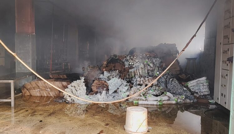 କୋଦଳା ତେଜ୍ ଏଗ୍ରୋ ଫ୍ୟାକ୍ଟ୍ରିରେ ଅଗ୍ନିକାଣ୍ଡ ; ତିନି କୋଟିରୁ ଉର୍ଦ୍ଧ୍ବ ଟଙ୍କାର କଞ୍ଚାମାଲ ଓ ଯନ୍ତ୍ରାଂଶ ପୋଡି ନଷ୍ଟ ।