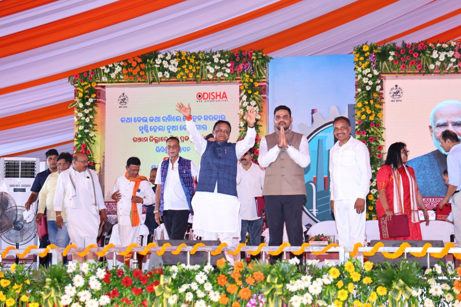 ଭୁବନେଶ୍ୱର,୦୫/୦୬:ଆଜି ମୁଖ୍ୟମନ୍ତ୍ରୀ ମୋହନ ଚରଣ ମାଝୀ ଗଂଜାମ ଜିଲ୍ଲା ଗସ୍ତରେ ଯାଇ ଛତ୍ରପୁର ଠାରେ ସମୁଦାୟ ୧୨ଟି ଶିଳ୍ପ ପାଇଁ ୨୮ ହଜାର କୋଟି ଟଙ୍କାରୁ ଉର୍ଦ୍ଧ୍ବ ପ୍ରକଳ୍ପର ଭିତ୍ତିପ୍ରସ୍ତର ସ୍ଥାପନ କରିବା ସହିତ କହିଛନ୍ତିଯେ, ଗ୍ରୀନ ହାଇଡ୍ରୋଜେନ୍, କେମିକାଲ୍ସ ଓ ଅକ୍ଷୟ ଶକ୍ତି କ୍ଷେତ୍ରରେ ପୁଞ୍ଜିନିବେଶ ସହିତ ଗଞ୍ଜାମ ଜିଲ୍ଲା ଏବେ ଶିଳ୍ପାୟନ କ୍ଷେତ୍ରରେ ଏକ ନୂଆ ବେଞ୍ଚମାର୍କ ସୃଷ୍ଟି କରିବାକୁ ଯାଉଛି।