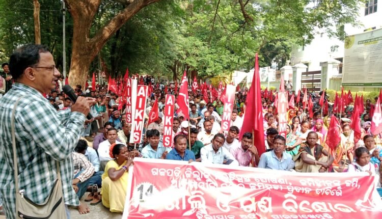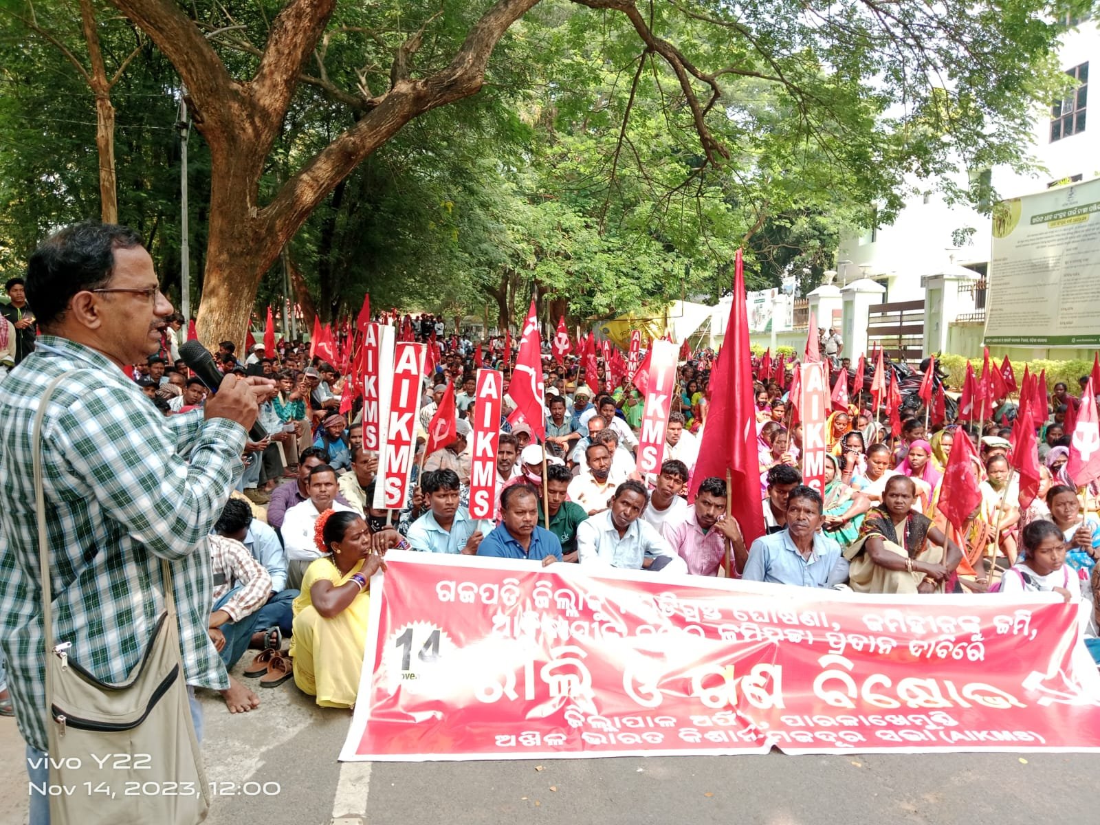 ପାରଳାଖେମୁଣ୍ଡି,୧୪/୧୧(ପିପିଟି): ଗଜପତି ଜିଲ୍ଲାକୁ ମରୁଡିଗ୍ରସ୍ତ ଘୋଷଣା, ଭୂମିହୀନଙ୍କୁ ଜମି, ଆଦିବାସୀ ଓ ଅନ୍ୟ ବନଜୀବିଙ୍କୁ ଜଙ୍ଗଲ ଜମି ପଟ୍ଟା ଓ ଅନ୍ୟାନ୍ୟ ଦାବି ନେଇ, ଆଜି ଅଖିଳ ଭାରତ କିଶାନ୍ ମଜଦୁର ସଭା (AIKMS) ଗଜପତି ଜିଲ୍ଲା କମିଟି ପକ୍ଷରୁ ଏକ ବିଶାଳ ରାଲି ଓ ଗଣ ବିକ୍ଷୋଭର ଆୟୋଜନ ହୋଇଥିଲା । ଆଜି ପୂର୍ବାହ୍ନ ଏଗାରଟା ବେଳେ ସ୍ଥାନୀୟ ନୂଆ ବସଷ୍ଟାଣ୍ଡରୁ ଏକ ଶୋଭାଯାତ୍ରା ବାହାରି ସହର ପରିକ୍ରମା କରିବା ସହ ଶେଷରେ ଜିଲ୍ଲାପାଳଙ୍କ କାର୍ଯ୍ୟାଳୟରେ ପହଞ୍ଚିବା ପରେ ସେଠାରେ ଏକ ସାଧାରଣ ସଭାର ସଭା ଅନୁଷ୍ଠିତ ହୋଇଥିଲା ।