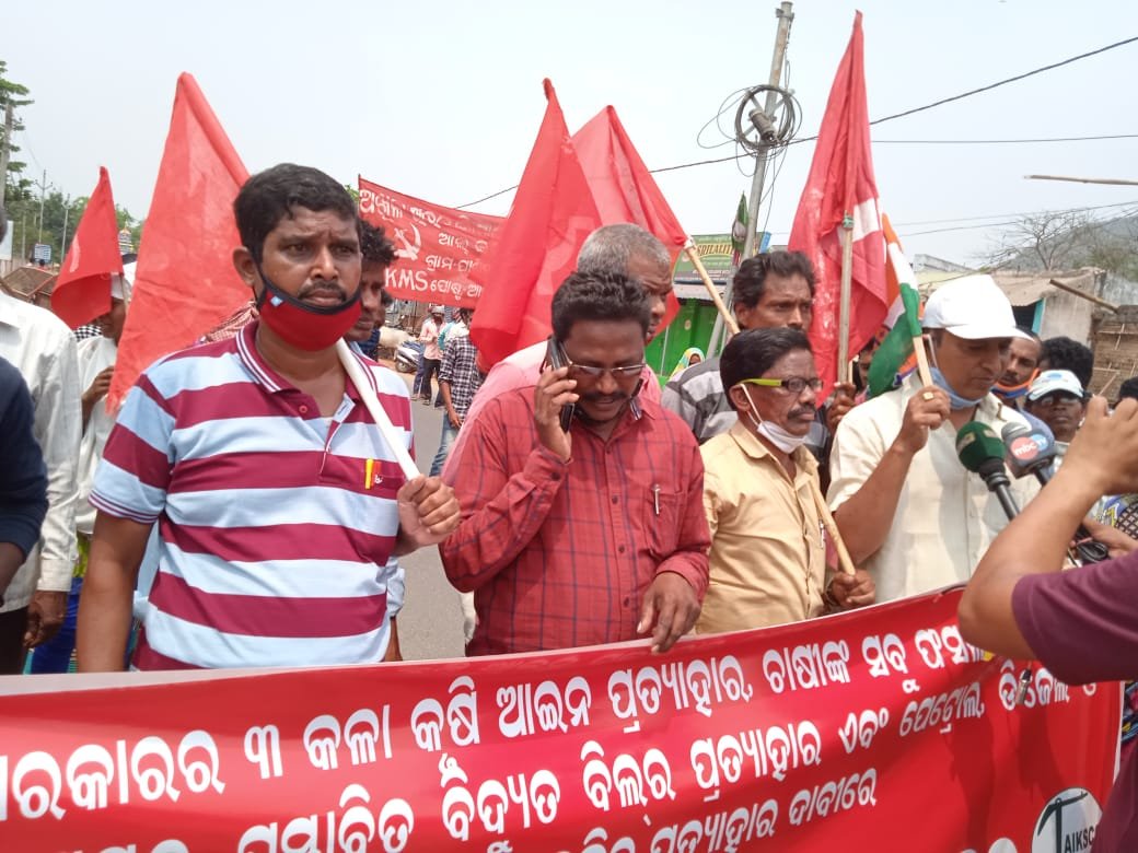 ପାରଳାଖେମୁଣ୍ଡିରେ ଏଆଇକେକେଏମଏସ୍ ଜିଲ୍ଲା ସମ୍ପାଦକ କେଦାର ଶବରଙ୍କ ନେତୄତ୍ଵରେ ଶତାଧିକ କୃଷକ, ଶ୍ରମିକ ଓ ବୁଦ୍ଧିଜୀବୀ ଏକ ପଟୁଆରରେ ସହର ପରିକ୍ରମା କରି କେନ୍ଦ୍ର ସରକାରଙ୍କ ବିଭିନ୍ନ କାର୍ଯ୍ୟାଳୟ ଓ ବ୍ୟଙ୍କ୍ ଆଗରେ ପିକେଟିଂ କରି ବନ୍ଦ କରିଥିବା ବେଳେ ଜିଲ୍ଲା କମିଟି ସଭ୍ୟ କାଡୁକା ଶବର ଏବଂ ଓଡିଶା କୃଷକ ସଭା କାର୍ତ୍ତିକ ଶବର ଓ ରଇତ କୁଲି ରଇତ ସଂଘର ରକମ୍ ଲୋକନାଥମଙ୍କ ନେତୄତ୍ଵରେ କାଶୀନଗର ବ୍ଳକର କାଶୀନଗର, ସିଆଳି, ହରିପୁର ଛକ, ଅଲଡା ଓ କଇଠପଦର ଛକ ଠାରେ ଶହ ଶହ କୃଷକ ଓ ଆଦିବାସୀ ବିକ୍ଷୋଭ ପ୍ରଦର୍ଶନ କରିବା ସହିତ ବହୁ ସମୟ ଧରି ରାସ୍ତାରୋକ କରିଥିଲେ । ଏଆଇକେକେଏମଏସର ଜିଲ୍ଲା କମିଟି ସଭ୍ୟ କାଡୁକା ଶବରଙ୍କ ସମେତ ସୁମ୍ଵ୍ରା ଶବର, ସାମସନ୍ ଗମାଙ୍ଗ, ଚୈତନ୍ୟ ଶବର, କାର୍ତ୍ତିକ ଶବର, କେ ମୀନା ରାଓ ପ୍ରମୁଖ ନେତୄତ୍ଵ ନେଇ କେନ୍ଦ୍ର ସରକାରଙ୍କ କୃଷକ ବିରୋଧୀ ନୀତିର ପ୍ରତିବାଦ କରି ଶୋଭାଯାତ୍ରା କରିବା ସହିତ ପାରଳାଖେମୁଣ୍ଡି-ଗୁଣପୁର ରାଜ୍ୟ ରାଜପଥକୁ ଅବରୋଧ କରିଥିଲେ । ଆନ୍ଦୋଳନକାରୀମାନେ ଦେଶୀ ବିଦେଶୀ ବଡ କମ୍ପାନୀଙ୍କ ସ୍ଵାର୍ଥରେ ମୋଦି ସରକାର ଦେଶର କୃଷି କ୍ଷେତ୍ରକୁ କମ୍ପାନୀମାନଙ୍କୁ ହସ୍ତାନ୍ତର କରି ଦେଶର କୃଷି, କୃଷକ ଓ ଖାଉଟୀଙ୍କ ସର୍ବନାଶ କରିବାକୁ ଯାଉଛନ୍ତି ବୋଲି ଅଭିଯୋଗ କରିଥିଲେ ।