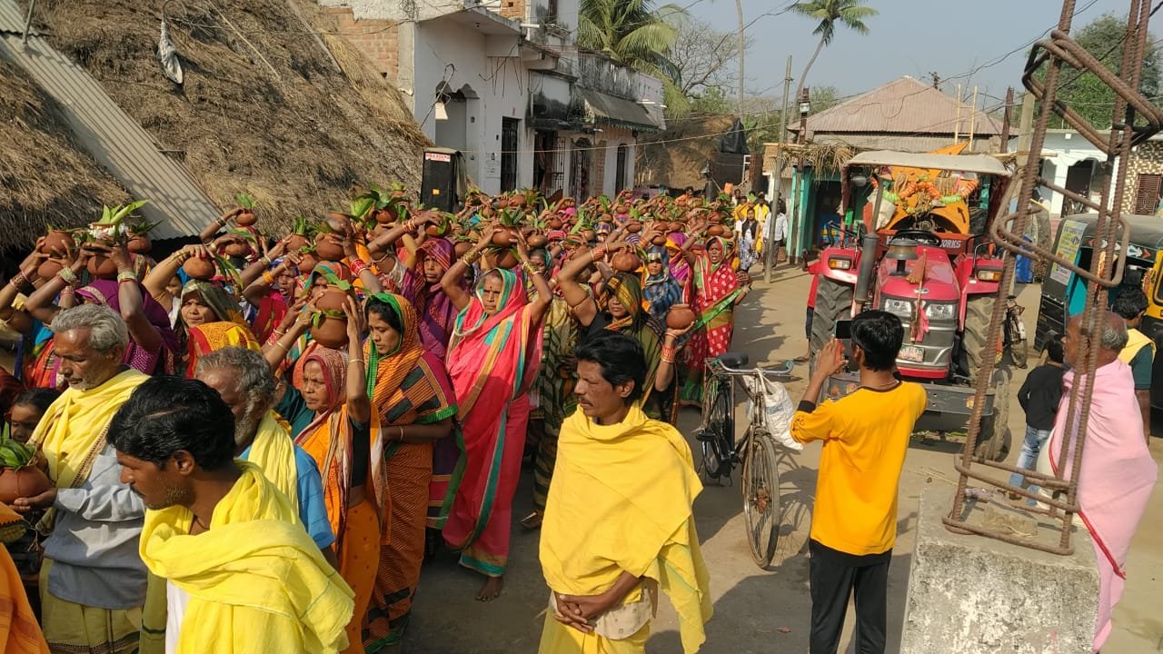 କୋଦଳା,୨୩/୦୨(ପିପିଟି); କୋଦଳା ଏନଏସି ୱାର୍ଡ ନଂ ୧୩ ଗୌରାଦେଇପୁର ନୁଆସାହି ଗ୍ରାମରେ ମଙ୍ଗଳବାର ୨୪ ପ୍ରହର ନାମଯଜ୍ଞ ମହା ଆଡମ୍ବର ସହିତ ଆରମ୍ଭ ହେଉଛି ।ଗତବର୍ଷ ଏହି ଅନୁଷ୍ଠାନ ନାମ ସଂକୀର୍ତ୍ତନ ଯଜ୍ଞ ଆରମ୍ଭ କରିଥିଲା । ଆଜି ଦ୍ଵିତୀୟ ବର୍ଷ ରେ ପଦାର୍ପଣ କରିଛି । ସକାଳ ଆଠ ଘଣ୍ଟ ସମୟ ରେ ଗ୍ରାମର ଶତାଧିଜ ମହିଳା ଓ ପୁରୁଷ ବିରାଟ ଶୋଭାଯାତ୍ରା ରେ ବାହାରି ଗ୍ରାମ ପୋଖରୀରୁ ପୁର୍ଣ ଜଳ କଳସି ଧରିଆସି ନାମଯଜ୍ଞ ମଣ୍ଡପ ସ୍ଥଳ ରେ ପହଞ୍ଚି କାର୍ଯ୍ୟକ୍ରମ ଆରମ୍ଭ କରିଥିଲେ । କୋଦଳା ଗୋପାଳଜୀ ମଠ ମହନ୍ତ ମହାରାଜ ଜଗନ୍ନାଥ ଦାଶ କାର୍ଯ୍ୟକ୍ରମ ଆରମ୍ଭ କରିଥିଲେ । ପରେ ପରେ ଦୁରଦୂରାନ୍ତରୁ ଆସିଥିବା ନାମ ସଂକୀର୍ତ୍ତନ ମଣ୍ଡଳୀ ନାମ ପରିବେଷଣ କରିଥିଲେ । ସନ୍ଧ୍ୟାରେ ଆଳତି ଦର୍ଶନ ଲାଗି ଆଖପାଖ ଅଞ୍ଚଳରୁ ଭକ୍ତଙ୍କ ଗହଳି ଲାଗି ରହିଥିଲା । ଆସନ୍ତା ଶୁକ୍ରବାର ଉଦଯାପିତ ହେବବୋଲି ନାମଜଜ୍ଞ କମିଟି ପ୍ରକାଶ କରିଛନ୍ତି । ଗ୍ରାମରେ ଆଧ୍ୟାତ୍ମିକ ପରିବେଶ ଶୃଷ୍ଟି ହେଉଛି !ପ୍ରତ୍ୟକ ଘରେ ଅତିଥିଙ୍କ ଗହଳି । ଗ୍ରାମବାସୀ ଏବଂ ଭକ୍ତଙ୍କ ପାଇଁ ଦୁଇଓଳା ପ୍ରସାଦ ସେବନର ବ୍ୟବସ୍ଥା ହୋଇଛି । ଗ୍ରାମର ଯୁବଗୋଷ୍ଠୀ ସମସ୍ତ କ୍ଷେତ୍ରରେ ସହଯୋଗ କରୁଥିବା ଦେଖାଦେଇଛି ।
