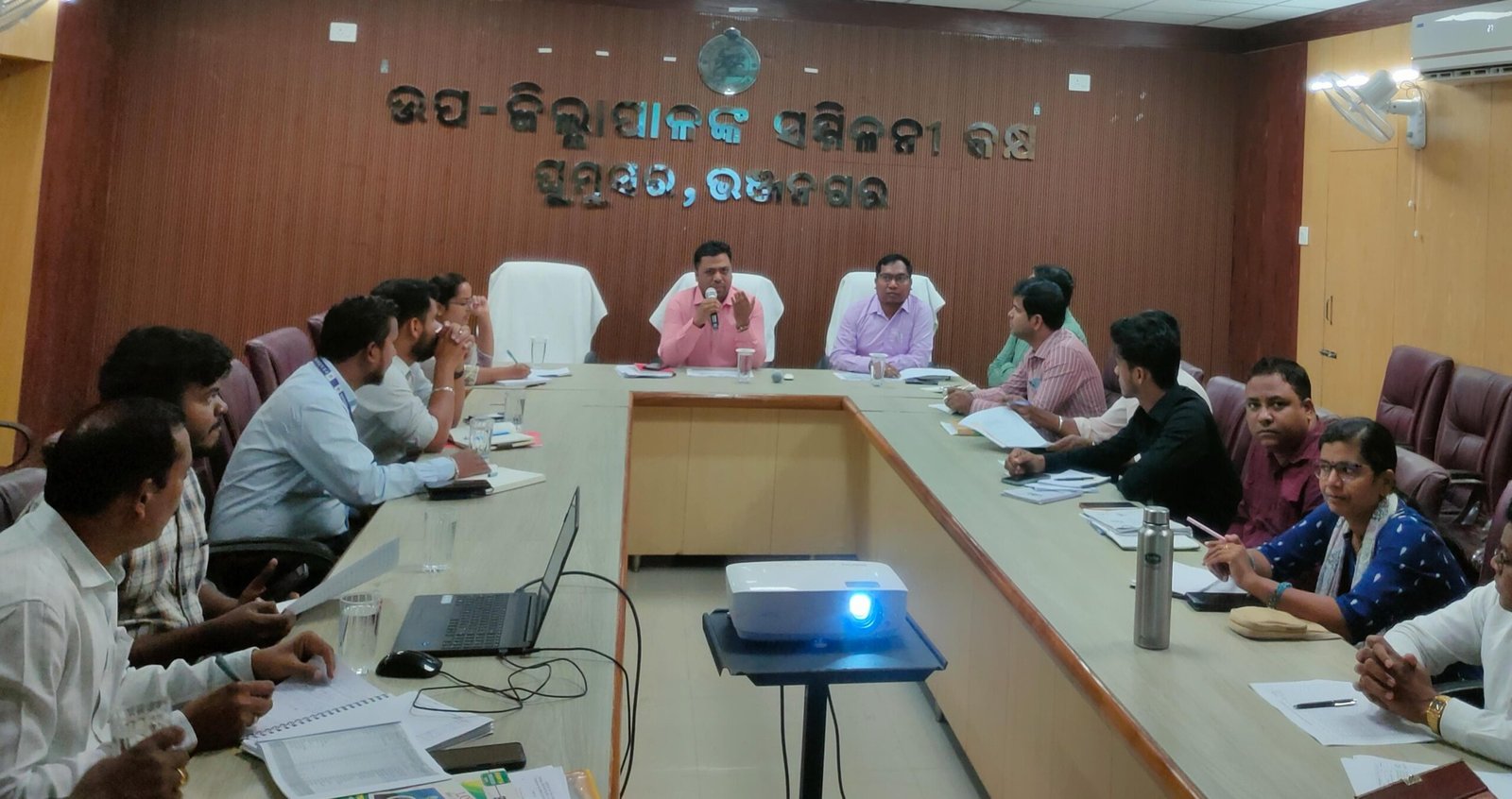 ଏହା ପୁର୍ବରୁ ଉପଜିଲ୍ଲାପାଳ ଙ୍କ ଅଧ୍ୟକ୍ଷତାରେ ଭଞ୍ଜନଗର ଗ୍ରାମ୍ୟ ପାଇପ ଜଳ ଯୋଗାଣ ବିଭାଗ ଅଧୀନରେ ଚାଲିଥିବା ରାଜ୍ୟର ସବୁଠୁ ବଡ ମେଗା ପାନୀୟ ଜଳ ଯୋଗାଣ ପ୍ରକଳ୍ପ କାର୍ଯ୍ୟର ସମୀକ୍ଷା କରାଯାଇଥିଲା। ପ୍ରକଲ୍ପ କାମ କିଭଳି ଭାବେ ତ୍ବାରାନ୍ବିତ ହେବ ସେନେଇ ବିଭିନ୍ନ ବିଭାଗ ମଧ୍ୟରେ ସମନ୍ବୟ ରଖି ଶିଘ୍ର କାମ କରିବାକୁ ଉପଜିଲ୍ଲାପାଳ ଶ୍ରୀ ବେହେରା ବିଭାଗୀୟ ଅଧିକାରୀ ଓ ଠିକା ସ଼ଂସ୍ଥାକୁ ନିର୍ଦ୍ଦେଶ ଦେଇଥିଲେ। ବୈଠକରେ ଅନ୍ୟମାନଙ୍କ ମଧ୍ୟରେ ସହାୟକ ଜିଲ୍ଲାପାଳ ରଚିତା ମହାପାତ୍ର, ଗ୍ରାମ୍ୟ ପାନୀୟ ଜଳ ଯୋଗାଣ ବିଭାଗର ଅଧିକ୍ଷଣ ଯନ୍ତ୍ରୀ ମୁନା କାଲୁଣ୍ଡିଆ ଓ ଠିକା ସଂସ୍ଥାର କର୍ମଚାରୀଙ୍କ ସମେତ ଉପଖଣ୍ଡର ଅଧିକାରୀ ମାନେ ତଥା ବିଭିନ୍ନ ବ୍ଲକରୁ ଆସିଥିବା ଗ୍ରାମ୍ୟ ଜଳ ଯୋଗାଣ ବିଭାଗର ପଦାଧିକାରୀ ଉପସ୍ଥିତ ଥିଲେ।