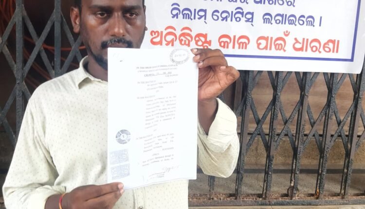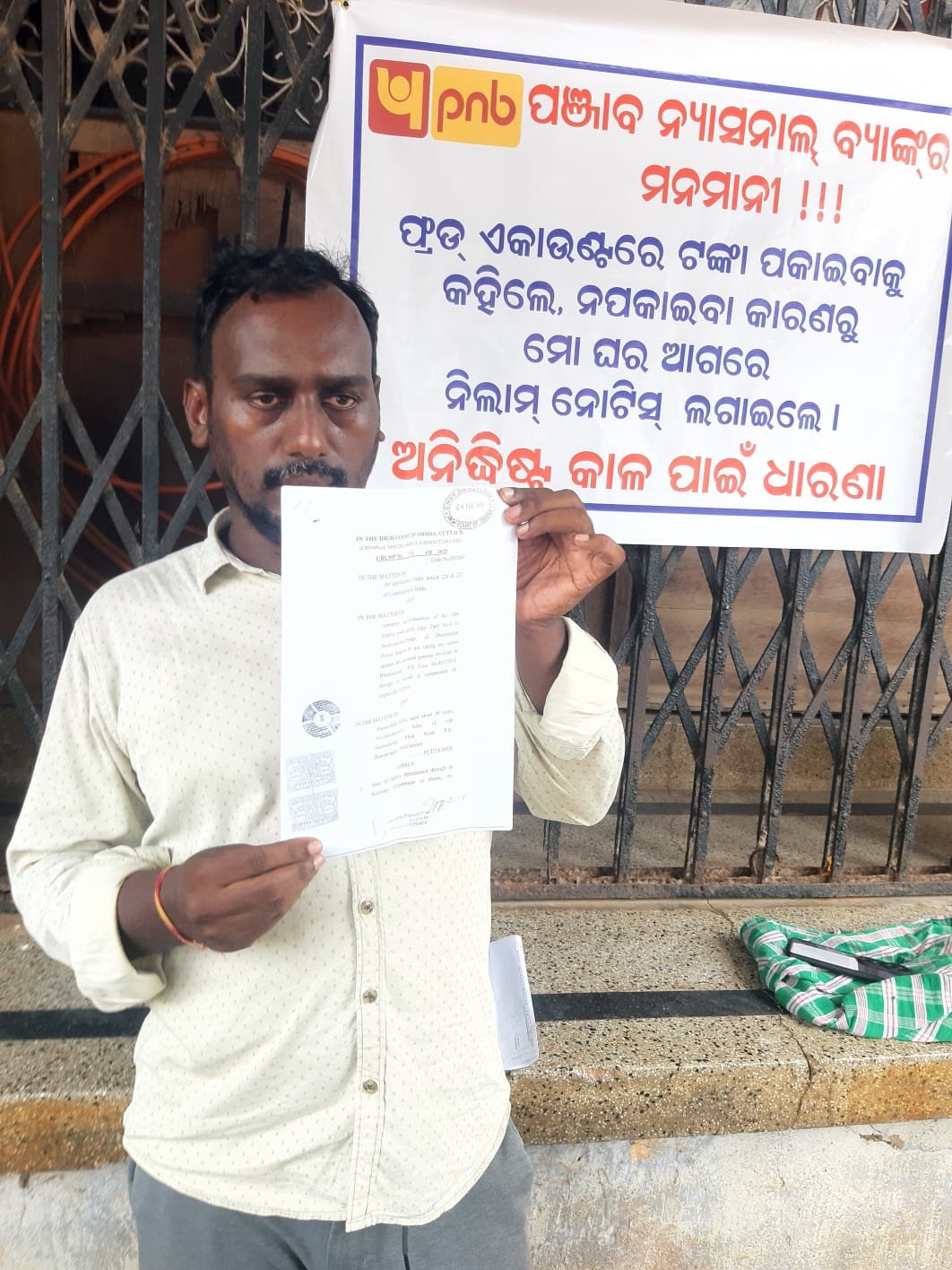 ଘର ଆଗରେ ଲଟକା ଜାରି ପ୍ରତିବାଦରେ ବ୍ୟାଙ୍କ ଆଗରେ ଧାରଣା ।