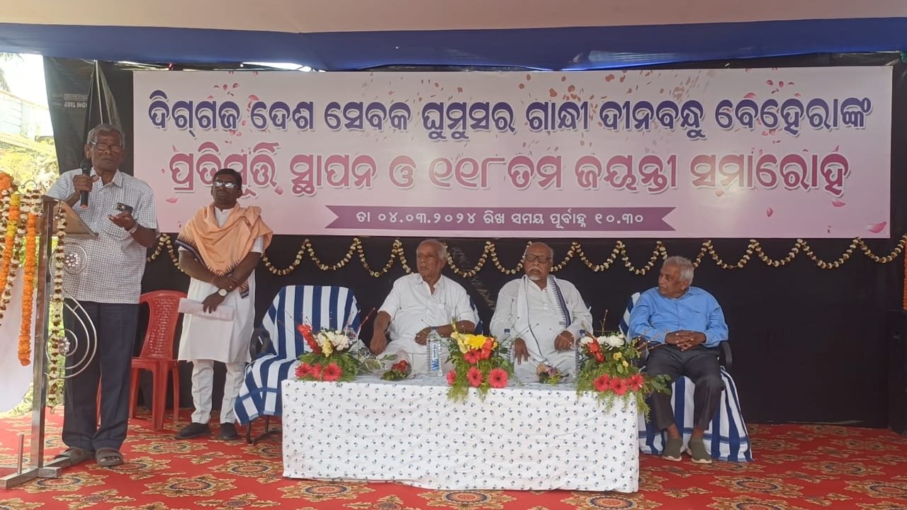 ଘୁମୁସୁର,୦୪/୦୩(ପିପିଟି) : ପ୍ରାଚୀନ ରାଜଧାନୀ ଜୟନ୍ତୀଗଡ ନିକଟସ୍ଥ ପବିତ୍ର ରଘୁନାଥ ସ୍ଵାମୀଙ୍କ ପୀଠ ନେଟଙ୍ଗାସ୍ଥିତ ରତ୍ନପୁର ଠାରେ ତଥା ଦୀନଵନ୍ଧୁ ବେହେରାଙ୍କ ଜନ୍ମ ଭବନ(ଏଣ୍ଟୁଡିଶାଳ )ଠାରେ ତାଙ୍କର ୫ ଫୁଟର ଏକ ପ୍ରତିମୂର୍ତ୍ତି ସ୍ଥାପନ ହେବାସହ ଭବନ ସମ୍ମୁଖରେ ମହା ସମାରୋହରେ ଜୟନ୍ତୀ ସମାରୋହ ଅନୁଷ୍ଠିତ ହୋଇଯାଇଛି । ଉକ୍ତ କାର୍ଯ୍ୟକ୍ରମରେ ବିଶିଷ୍ଟ ଶିକ୍ଷାବିତ,ସଙ୍ଗଠକ ପଞ୍ଚାନନ ଗୌଡ ମୁଖ୍ୟ ଅତିଥି ଭାବେ ଯୋଗଦେଇ ଦୀନଵନ୍ଧୁ ବେହେରାଙ୍କ କୃତିତ୍ୱ ତଥା କାର୍ଯ୍ୟାବଳୀ ବିଷୟରେ ଗଭୀର ଭାବେ ଆଲୋକପାତ କରିଥିଲେ । ଘୁମୁସରର ବିଶିଷ୍ଟ କୃଷି ବିଶାରଦ ରାଜେନ୍ଦ୍ର କୁମାର ଦାସ ମୁଖ୍ୟ ବକ୍ତା ଭାବେ ଯୋଗଦେଇ ଥିବାବେଳେ ଘୁମୁସର ବରିଷ୍ଠ ନାଗରିକ ସଂଘର ସଭାପତି ତଥା ଘୁମୁସର ବିକାଶ ପରିଷଦର ସଭାପତି ସୋମନାଥ ନାୟକ ଏବଂ ବିଶିଷ୍ଟ ଶିକ୍ଷାବିତ ତଥା ପ୍ରାକ୍ତନ ଅଧ୍ୟକ୍ଷ ଶିବରାମ ପଣ୍ଡା ସମ୍ମାନିତ ଅତିଥି ଭାବେ ଯୋଗଦେଇ ସ୍ବର୍ଗତ ବେହେରାଙ୍କ ସ୍କୃତି ଚାରଣ କରିଥିଲେ । ଉକ୍ତ ଜୟନ୍ତୀ ସମାରୋହରେ ଦିନବନ୍ଧୁ ବେହେରାଙ୍କ ଦ୍ବାରା ଘୁମୁସରରେ ସ୍ଥାପିତ ହେଇଥିବା ସମସ୍ତ ଉଚ୍ଚ ବିଦ୍ୟାଳୟର ପ୍ରଧାନଶିକ୍ଷକ ମାନଙ୍କୁ ସମ୍ବର୍ଦ୍ଧିତ କରାଯାଇଥିଵା ସହ ଉକ୍ତ ଵିଦ୍ୟାଳୟର ମେଧାବୀ ଛାତ୍ର ଏବଂ ଗରୀବ ଛାତ୍ର ୨୨ ଜଣଙ୍କୁ ଏବଂ ଵେଲଗୁଣ୍ଟା ପଞ୍ଚାୟତ ସମିତିର ୧୦ ଜଣ ସରପଞ୍ଚ ଓ ୧୫ ଜଣ ଆଦର୍ଶ କୃଷକଙ୍କୁ ଏବଂ ନେଟଙ୍ଗା , ରତ୍ନପୁର ଓ କୁମ୍ଭାରସାହି ନା ସର୍କିତ୍ତନ ଦଳକୁ
