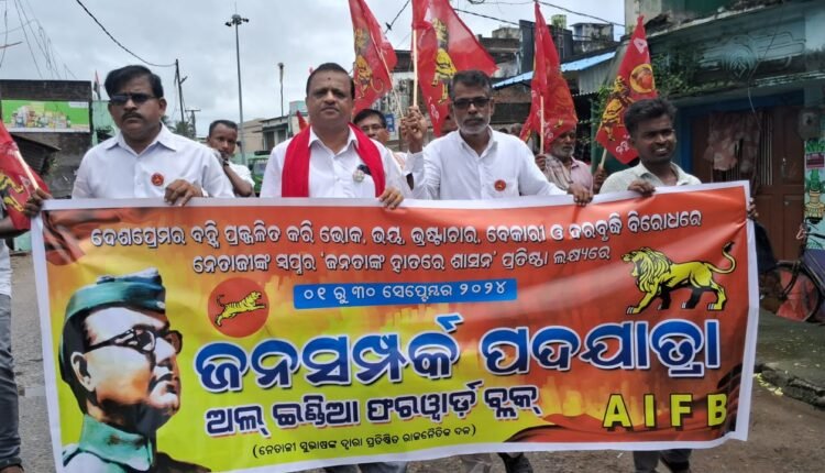 ଚିକିଟି,୦୧/୦୯(ପିପିଟି):ଶିକ୍ଷା,ସ୍ୱାସ୍ଥ୍ୟ, ନିଯୁକ୍ତି,ଜମି,ଖାଦ୍ୟ ଵା ବାସଗୃହର ଆବଶ୍ୟକତା ମେଣ୍ଟାଇବା ପାଇଁ ଏବେ ବି ଆମେ ସଂଘର୍ଷରତ । ମଦ ମାଫିଆ, ପୁଞ୍ଜିପତି ମାନେ ଗଣତନ୍ତ୍ରକୁ କବ୍ଜା କରି ଜନସାଧାରଣଙ୍କୁ ପଙ୍ଗୁ କରିଦେଲେଣି । ଏଣୁ ଦେଶପ୍ରେମ ବହ୍ନହି ପ୍ରଜ୍ବଳିତ କରି ଭୋକ,ଭୟ, ଭ୍ରଷ୍ଟାଚାର, ବେକାରୀ ଦରବୃଦ୍ଧି, ବିଷାକ୍ତ ମଦ ମୃତ୍ୟୁ ବିରୁଦ୍ଧରେ ନେତାଜୀଙ୍କ ସ୍ବପ୍ନ “ଜନତା ଙ୍କ ହାତରେ ଶାସନ ” ପ୍ରତିଷ୍ଠା ପାଇଁ ଅଲ ଇଣ୍ଡିଆ ଫରୱାର୍ଡ଼ ବ୍ଲକ ଓଡିଶା ରାଜ୍ୟ କମିଟି ନିଷ୍ପତି ମୁତାବକ ସାରା ରାଜ୍ୟ ରେ ଜନ ସମ୍ପର୍କ ପଦଯାତ୍ରାର ଶୁଭାରମ୍ଭ ଚିକିଟି ବ୍ଲକ ରୁ ଆରମ୍ଭ ହୋଇଛି । ଏହି ପରିପ୍ରେକ୍ଷୀରେ ଗଞ୍ଜାମ ଜ଼ିଲ୍ଲା ଫରୱାର୍ଡ଼ ବ୍ଲକ ସଭାପତି ତଥା ଚିକିଟି ବିଧାୟକ ପ୍ରାର୍ଥୀ ବିଭୂଧେନ୍ଦ୍ର ପାଢ଼ୀଙ୍କର ନେତୃତ୍ୱରେ ଚିକିଟି ରେ ଏକ ପଦଯାତ୍ରା ଆରମ୍ଭ କରାଯାଇଥିଲା । ଚିକିଟି ଗଡ଼ ବଜାର ଛକ ରେ ରହିଥିବା ନେତାଜୀଙ୍କ ସହଯୋଗୀ ତଥା ପ୍ରାକ୍ତନ ଫରୱାର୍ଡ଼ ବ୍ଲକ ବିଧାୟକ ସ୍ବର୍ଗତ ଦିବାକର ପଟ୍ଟନାୟକଙ୍କ ପ୍ରତିମୂର୍ତ୍ତି ଉପରେ ପୁଷ୍ପମାଲ୍ୟ ଅର୍ପଣ କରି ପଦଯାତ୍ରାର ଆୟାମରମ୍ଭ କରାଯାଇଥିଲା । ଏହି ପଦଯାତ୍ରା ଚିକିଟି ପେଣ୍ଠ ବଜାର ଅତିକ୍ରମ କରି କରବାଲୁଆ ପାଣ୍ଡା ଛକ ଠାରେ ସମାପ୍ତ ହୋଇଥିଲା । ଫରୱାର୍ଡ଼ ବ୍ଲକ ରାଜ୍ୟ ସାଧାରଣ ସମ୍ପାଦକ ଜ୍ୟୋତି ରଞ୍ଜନ ମହାପାତ୍ର, ରାଜ୍ୟ ସଭାପତି ପୂର୍ଣ୍ଣଚନ୍ଦ୍ର ପାଢ଼ୀ,ଗଞ୍ଜାମ ଜ଼ିଲ୍ଲା ସାଧାରଣ ସମ୍ପାଦକ ସନ୍ତୋଷ କୁମାର ସାହୁ, କୋଷାଧକ୍ଷ ସ୍ଵପ୍ନେଶ୍ଵର ପାଣିଗ୍ରାହୀ,ଫରୱାର୍ଡ଼ ବ୍ଲକ ଆଗ୍ରଗାମୀ ମହିଳା ସମିତି ରାଜ୍ୟ ସାଧାରଣ ସମ୍ପାଦକ ଲକ୍ଷ୍ମୀ ଦୋରା, ଆଜାଦ ହିନ୍ଦ ବାହିନୀ ରାଜ୍ୟ ସଂଯୋଜକ ଦିଶା ଏବଂ ପିଣ୍ଟୁ ପ୍ରଧାନ ସମେତ ବହୁ ନେତା,କର୍ମୀ ଏହି ପଦଯାତ୍ରାରେ ସାମିଲ ହୋଇଥିଲେ । ପରିଶେଷରେ ଫରୱାର୍ଡ଼ ବ୍ଲକ ର ରାଜ୍ୟ ନେତୃତ୍ୱ ଏବଂ ଜ଼ିଲ୍ଲା ନେତୃତ୍ୱ ମଣ୍ଡଳୀ ଚିକିଟି ବିଜ୍ଞାପିତ ଅଞ୍ଚଳର ଜେନାପୁର ଗସ୍ତ କରି ମଦ ମୃତ୍ୟୁ ପରିବାରଙ୍କୁ ଭେଟି ସେମାନଙ୍କୁ ସମବେଦନା ଜଣାଇଥିଲେ । ଅବକାରୀ ଏବଂ ମଦ ମାଫିଆଙ୍କ ମଧୁଚନ୍ଦ୍ରିକା ଯୋଗୁଁ ବିଷାକ୍ତ ମଦ ମୃତ୍ୟୁରେ ଶିକାର ହୋଇଥିବା ମୃତକ ପରିବାରଙ୍କୁ ୨୦ ଲକ୍ଷ କ୍ଷତିପୂରଣ ପ୍ରଦାନ,ସେମାନଙ୍କ ବାସଗୃହ ପଟ୍ଟା ଯୋଗାଇବା ଆଦି ଦାବୀ ରାଜ୍ୟ ସରକାରଙ୍କ ପାଖରେ ରଖିବା ନିର୍ଭର ପ୍ରତିଶୃତି ରଖିଥିଲେ । ଦରକାର ପଡିଲେ ଆସନ୍ତା ଦିନରେ ସେମାନଙ୍କ ଦାବୀ ହାସଲ ନିମନ୍ତେ ଗଞ୍ଜାମ ଜ଼ିଲ୍ଲାପାଳଙ୍କ ଅଫିସ ସମ୍ମୁଖରେ ଫରୱାର୍ଡ଼ ବ୍ଲକ ଜ଼ିଲ୍ଲା କମିଟି ଧାରଣା ଦେବ ବୋଲି କହିଥିଲେ ।
