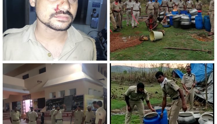 ଚୋରା ମଦ ଚଢାଉ ବେଳେ ପୋଲିସ ଉପରେ ଆକ୍ରମଣ; ତିନି ଅଟକ ଓ ମଦ ଜବତ ।