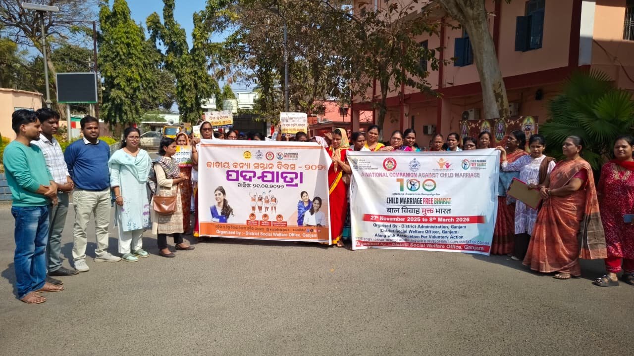 ଛତ୍ରପୁର,୨୨/୦୧(ପିପିଟି): ଜାତୀୟ କନ୍ୟା ଶିଶୁ ଦିବସ-୨୦୨୬ ଅବସରରେ ଆଜି ସ୍ଥାନୀୟ କଲେକ୍ଟରେଟ୍ ଠାରେ ଏକ ସଚେତନତା ପଦଯାତ୍ରା ଆୟୋଜନ କରାଯାଇଥିଲା। ଏହି ପଦଯାତ୍ରା ଜନସାଧାରଣଙ୍କୁ ସଚେତନ କରିବା ପୂର୍ବକ କଲେକ୍ଟରେଟ୍ ଠାରୁ ବାହାରି ବଜାର ଦେଇ ଡିଆରଡିଏ ସ୍କୋୟାର ପର୍ଯ୍ୟନ୍ତ ଯାଇଥିଲା। କନ୍ୟା ଶିଶୁଙ୍କ ଗୁରୁତ୍ୱ, ଅଧିକାର ଏବଂ ସଶକ୍ତିକରଣ ଉପରେ ଲୋକମାନଙ୍କ ମଧ୍ୟରେ ସଚେତନତା ସୃଷ୍ଟି କରାଯାଇଥିଲା ।ପଦଯାତ୍ରାରେ ଅଧିକାରୀ,ଅଂଶୀଦାର ଏବଂ ମହିଳାମାନେ ଅଂଶଗ୍ରହଣ କରିଥିଲେ । ଅଂଶଗ୍ରହଣକାରୀମାନେ ଲିଙ୍ଗଗତ ସମାନତା,ସୁରକ୍ଷା ଏବଂ କନ୍ୟା ଶିଶୁଙ୍କ ସଶକ୍ତିକରଣ ଉପରେ ସ୍ଲୋଗାନ ଦେଇ ସାଧାରଣ ଜନତାଙ୍କ ମଧ୍ୟରେ ସଚେତନତା ବୃଦ୍ଧି କରିଥିଲେ। ଜିଲ୍ଲା ଶିଶୁ ସୁରକ୍ଷା ଅଧିକାରୀ ରାଜଶ୍ରୀ ଦାସ ଏବଂ ମହିଳା ସୁରକ୍ଷା ଅଧିକାରୀ ଡି. ନାଗାରତ୍ନମ ଏହି କାର୍ଯ୍ୟକ୍ରମର ଶୁଭାରମ୍ଭ କରିଥିଲେ । ଜିଲ୍ଲା ମହିଳା ସଶକ୍ତିକରଣ ହବର ଜିଲ୍ଲା ସଂଯୋଜକ ଗୀତାଞ୍ଜଳି ମହାରଣା ଏବଂ ଜିଲ୍ଲା ସମାଜ କଲ୍ୟାଣ କାର୍ଯ୍ୟାଳୟ ଅଧିକାରୀ ଏବଂ କର୍ମଚାରୀଙ୍କ ମାନେ ଆଜିର କାର୍ଯ୍ୟକ୍ରମ ଆୟୋଜନ କରିଥିଲେ।