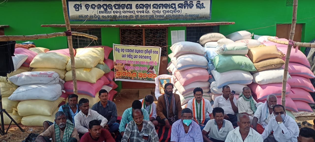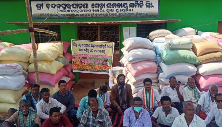 ଜିଲ୍ଲା ସହଯୋଗାଣ ଅଧିକାରୀ ଧାନମଣ୍ଡିରୁ ଧାନ ନ ଉଠେବାରୁ ସେବା ସମବାୟ ସମିତି ଲିଃ ସମୁଖରେ ଅମରଣ ଅନଶନ।