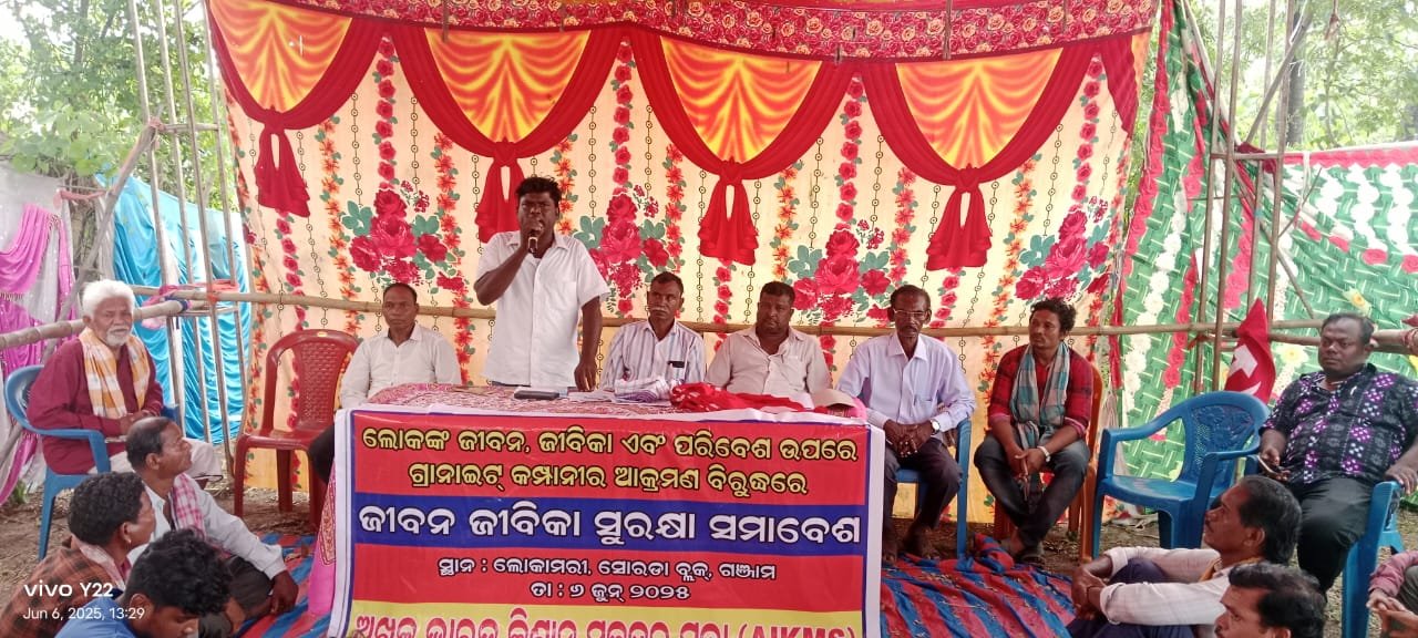 ବ୍ରହ୍ମପୁର,୦୬/୦୬(ପିପିଟି): ଜୀବନ, ଜୀବିକା ଓ ପରିବେଶର ସୁରକ୍ଷା ଦାବିରେ ଆଜି ଅଖିଳ ଭାରତ କିଶାନ୍ ମଜଦୂର ସଭା (AIKMS)ର ସୋରଡା ବ୍ଲକ୍ ଶାଖା ପକ୍ଷରୁ ଏକଲପୁର ପଞ୍ଚାୟତର ଲୋକାମାରି ଠାରେ ଏକ ଗଣ ସମାବେଶ ଆୟୋଜିତ ହୋଇଯାଇଛି । ଭିଟାମାଟିର ସୁରକ୍ଷା ପାଇଁ ସଂଗଠନର ବ୍ଳକ୍ ସଭାପତି କାଳୀଚରଣ ନାୟକଙ୍କ ଅଧ୍ୟକ୍ଷତାରେ ଆୟୋଜିତ ଆଜିର ଏହି ସମାବେଶରେ ବ୍ଳକର ବିଭିନ୍ନ ଗ୍ରାମରୁ ଶହ ଶହ ଲୋକ ଯୋଗ ଦେଇଥିଲେ । ଏଠାରେ ଉଲ୍ଲେଖଯୋଗ୍ୟ ଯେ ରାଜ୍ୟ ସରକାର ଲୋକାମାରୀ ଠାରେ ଗ୍ରାନାଇଟ୍ ଖଣିକୁ ଏକ ଘରୋଇ କମ୍ପାନୀକୁ ସ୍ଥାନୀୟ ଗ୍ରାମବାସୀମାନଙ୍କ ବିରୋଧ ସତ୍ତ୍ଵେ ଲିଜ ଦେଇଛନ୍ତି । ସମ୍ପୃକ୍ତ କମ୍ପାନୀ ଖଣି ଖନନ ପାଇଁ କରୁଥିବା ବିସ୍ଫୋରଣ ଫଳରେ ଗାଁ ଲୋକଙ୍କ ଘରଦ୍ୱାର ଭାଙ୍ଗିଯିବା ସହ ସେମାନଙ୍କ ଚାଷ ନଷ୍ଟ ହେବାରେ ଲାଗିଛି । ଖଣି ଖନନ ଯୋଗୁଁ ଲୋକଙ୍କ ଧନ ଜୀବନ ପ୍ରତି ସୃଷ୍ଟି ହୋଇଥିବା ଏହି ବିପଦ ସମ୍ପର୍କରେ ଅତିତରେ ସେମାନେ ସରକାରଙ୍କ ଦୃଷ୍ଟି ଆକର୍ଷଣ କରିଥିଲେ ମଧ୍ୟ ଏଯାଏଁ କୌଣସି ପଦକ୍ଷେପ ଦେଖିବାକୁ ମିଳିନି । ବରଂ ଲୋକଙ୍କ ଅଭିଯୋଗ ପରେ ସ୍ଥାନୀୟ ତହସିଲଦାର ଓ ଖଣି ଅଧିକାରୀଙ୍କୁ ନେଇ ଗଠିତ ମିଳିତ ତଦନ୍ତ ଦଳ କମ୍ପାନୀର ବେଆଇନ କାର୍ଯ୍ୟକୁ ଚିହ୍ନଟ କରିବା ବଦଳରେ ତାକୁ କ୍ଳିନ୍ ଚିଟ୍ ପ୍ରଦାନ କରିଛି । ଏହି ପରିପ୍ରେକ୍ଷୀରେ ନିଜର ଭିଟାମାଟି, ଘରଦ୍ୱାର ଓ ପରିବେଶର ସୁରକ୍ଷା ପାଇଁ ଗାଁଲୋକେ ଶାନ୍ତିପୂର୍ଣ୍ଣ ଭାବେ ପ୍ରତିବାଦ ଆନ୍ଦୋଳନ ଆରମ୍ଭ କରିଛନ୍ତି । ଲୋକଙ୍କ ଶାନ୍ତିପୂର୍ଣ୍ଣ ବିରୋଧ ଫଳରେ ବର୍ତମାନ କମ୍ପାନୀ ତରଫରୁ ସେଠାରେ ଖଣିଖନନ ସ୍ଥଗିତ ରହିଛି ।ଆଜିର ଗଣ ସମାବେଶରେ ଅନ୍ୟମାନଙ୍କ ମଧ୍ୟରେ ଏଆଇକେଏମଏସ୍ ରାଜ୍ୟ ସମ୍ପାଦକ ପ୍ରତାପ ନାୟକ, ବ୍ଳକ୍ ସମ୍ପାଦକ ସଂଗ୍ରାମ ନାୟକ, ରାଜ୍ୟ କମିଟି ସଦସ୍ୟ ତଥା ଆଦିବାସୀ ନେତା କୁଶନାଥ ପ୍ରଧାନ, ପୀତବାସ ପ୍ରଧାନ, ସର୍ବିନ ଗମାଙ୍ଗ,ଗାଁ କମିଟିର ସମ୍ପାଦକ ପଞ୍ଚାନନ ନାୟକ,ଡ୍ରାଇଭର ନାୟକ ପ୍ରମୁଖ ଯୋଗଦେଇଥିଲେ । ଏହି ଅବସରରେ ବିଭିନ୍ନ ସଗ୍ରାମୀ ସ୍ଳୋଗାନ ଦେଇ ଲୋକଙ୍କ ଏକ ବର୍ଣ୍ଣାଢ଼୍ୟ ଶୋଭାଯାତ୍ରା ଗାଁ ପରିକ୍ରମା କରିଥିଲା ।