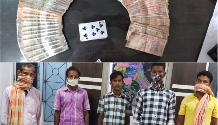ଜୁଆ ଆଡ୍ଡା ଉପରେ ପୁଲିସର ଚଢ଼ାଉ ; ନଗଦ ୯,୮୦୦ ଟଙ୍କା,ତାସ୍ ସହ ପାଞ୍ଚ ଜୁଆଡି ଗିରଫ ।