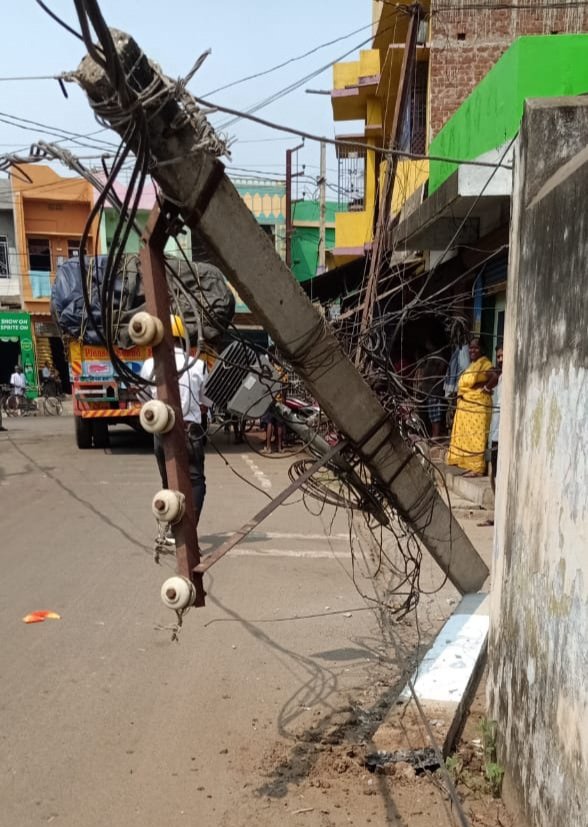 ଭଞ୍ଜନଗର,୦୯/୦୩(ପିପିଟି);ଭଞ୍ଜନଗର ଭେଜିପୁଟ ପାୱାର ହାଉସ ଛକରେ ଏକ ଚାଉଳ ବୋଝେଇ ଟ୍ରକ ରାସ୍ତା କଡରେ ଥିବା ଏକ ବିଦ୍ୟୁତ ଖୁଣ୍ଟକୁ ଧକ୍କା ଦେବାରୁ ତାହା ଭାଙ୍ଗି ୨ଖଣ୍ଡ ହୋଇଯାଇଛି। ଟ୍ରକ ଟି ବ୍ଲକଛକରୁ ମନଇଛା ସାହି ରାସ୍ତାରେ ଆସି ଭେଜିପୁଟ ମୁଖ୍ୟ ରାସ୍ତାକୁ ବାହାରୁ ଥିବା ବେଳେ ପୂର୍ବରୁ ସେଠାରେ ଏକ ଟ୍ରକ ରାସ୍ତା କଡରେ ଛିଡା ହେଇଥିବା ବେଳେ ତାକୁ ଅତିକ୍ରମ କରି ଉକ୍ତ ଚାଉଳ ଟ୍ରକଟି ଯାଉଥିବା ସମୟରେ ସେଠାରେ ଥିବା ଏକ ବିଦ୍ୟୁତ ଖୁଣ୍ଟକୁ ଧକ୍କା ଦେଇଥିଲା।ଫଳରେ ଖୁଣ୍ଟଟି ଭାଙ୍ଗି ବିଦ୍ୟୁତ ତାର ସବୁ ରାସ୍ତା ଉପରେ ଝୁଲି ରହିଥିଲା। ହେଲେ କୌଣସି ଅଘଟଣ ଘଟିନଥିବା ଜଣାପଡ଼ିଛି। ଖବର ପାଇ ବିଦ୍ୟୁତ ବିଭାଗ କର୍ମଚାରୀ ମାନେ ସେଠାରେ ପହଞ୍ଚି ବିଦ୍ୟୁତ ସରବରାହ ବିଛିନ୍ନ କରିଥିଲେ।
