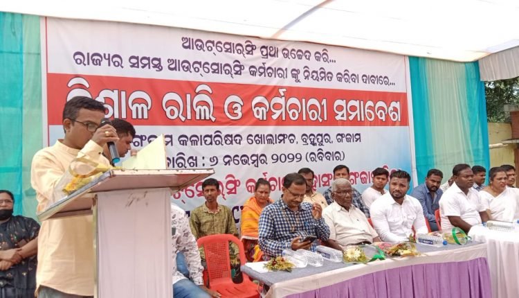 ଅତଏବ ଶୋଷଣକାରୀ ଆଉଟସୋରସିଂ ବ୍ୟବସ୍ଥାର ଉଚ୍ଛେଦ କରି ସରକାରଙ୍କ ବିଭିନ୍ନ ବିଭାଗରେ କାର୍ଯ୍ୟରତ ଏହି କର୍ମଚାରୀଙ୍କୁ ନିୟମିତ କରିବା ଦାବିରେ ଆଗାମୀ ଦିନରେ ମହାସଙ୍ଘ ତରଫରୁ ରାଜ୍ୟସ୍ତରୀୟ ଆନ୍ଦୋଳନ କରିବାକୁ ପ୍ରସ୍ତୁତି ଚାଲିଛି । ଏହି ପରିପ୍ରେକ୍ଷୀରେ ଆଜି ଆଉଟସୋରସିଂ କର୍ମଚାରୀ ମହାସଂଘର ଗଞ୍ଜାମ ଜିଲ୍ଲା କମିଟି ପକ୍ଷରୁ ବ୍ରହ୍ମପୁର ଠାରେ ଏକ ବିଶାଳ ଶୋଭାଯାତ୍ରା ଓ ସମାବେଶ ଅନୁଷ୍ଠିତ ହୋଇ ଯାଇଛି । ଆଜି ପୂର୍ବାହ୍ନରେ ସ୍ଥାନୀୟ ଗଣେଶ ମନ୍ଦିର ଠାରୁ ଆୟୋଜିତ ଏହି ଶୋଭାଯାତ୍ରା ସହର ପରିକ୍ରମା କରି ଗଞ୍ଜାମ କଳା ପରିଷଦ ଠାରେ ପହଞ୍ଚିବା ପରେ ସେଠାରେ ଏକ ସମାବେଶ ଅନୁଷ୍ଠିତ ହୋଇଥିଲା । ମହାସଂଘର ଜିଲ୍ଲା ସଭାପତି ବିଜୟ ମଲ୍ଲିକଙ୍କ ନେତୃତ୍ୱରେ ଆୟୋଜିତ ଏହି ସମାବେଶରେ ଶ୍ରମିକ ନେତା ଭାଲଚନ୍ଦ୍ର ଷଡ଼ଙ୍ଗୀ, ଅବସରପ୍ରାପ୍ତ କର୍ମଚାରୀ ନେତା କେ ନାନ୍ଦେଶୁ ସେନାପତି, ସମାଜସେବୀ ଅଜିତ ସ୍ଵାମୀ ପାତ୍ର ପ୍ରମୁଖ ଯୋଗ ଦେଇଥିଲେ ।