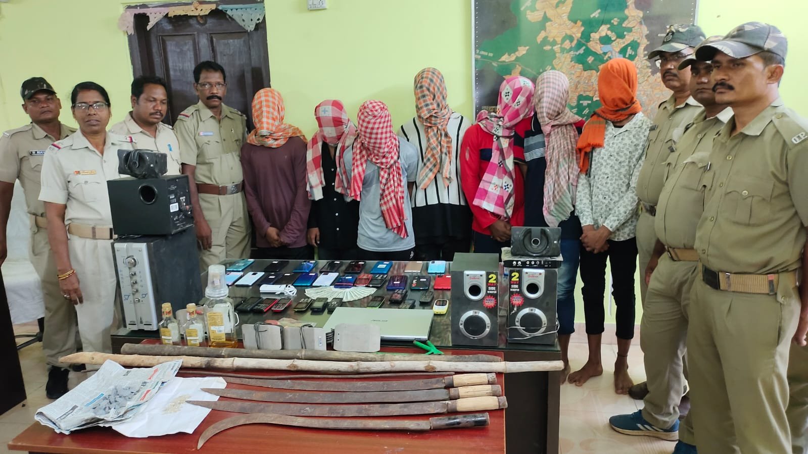 ଭଞ୍ଜନଗର,୦୨/୦୬(ପିପିଟି): ଗଞ୍ଜାମ ଜିଲ୍ଲା ଭଞ୍ଜନଗର ଥାନା ସୋରାଦେବୀ ଜଙ୍ଗଲରୁ ବୁଧବାର ରାତିରେ ପୋଲିସ ଏଜ ବଡ଼ ଧରଣର ଡକାୟତ ଗ୍ୟାଙ୍ଗକୁ ଧରିବାରେ ସଫଳ ହୋଇଛି। ସେଥି ମଧ୍ୟରେ ୧୪ଜଣଙ୍କୁ ପୋଲିସ ଗିରଫ କରିଛି। ସେମାନେ ହେଲେ ଭଞ୍ଜନଗର ଶଙ୍ଖ ସାହିର ସାଗର ବେହେରା, ସୁନୀଲ ନାୟକ, ପ୍ରେମ ବେହେରା, ନୂଆ ଗଡ଼ର ଜୟରାମ ବେହେରା, ମନୋଜ କୁମାର ବେହେରା, ଖଦାଳ ସାହିର ବବଲୁ ନାୟକ,ରାଜେନ୍ଦ୍ର ପାତ୍ର ଓରଫ ଚିଆଁ ଏବଂ ଅନ୍ୟ ୭ଜଣ ନାବାଳକ ରହିଛନ୍ତି। ମିଳିଥିବା ସୂଚନା ଅନୁସାରେ ଭଞ୍ଜନଗର ଥାନା ସବ ଇନିସ୍ପେକ୍ଟର କେଶବ ଶଢଙ୍ଗୀ ଓ ଅନ୍ୟ ପୋଲିସ କର୍ମଚାରୀ ମାନେ ରାତ୍ରୀ ପେଟ୍ରୋଲିଂ କରୁଥିବା ସମୟରେ ସୋରାଦେବୀ ଜଙ୍ଗଲରେ କିଛି ଦୁର୍ବୁତ୍ତ ଏକତ୍ରିତ ହୋଇ ସେହି ରାସ୍ତାରେ ଯାଉଥିବା ଲୋକଙ୍କ ଠାରୁ ଡକାୟତି ଉଦ୍ୟମ କରୁଥିବା ଖବର ପାଇ ଥାନା ଅଧିକାରୀ ଧିରେସ କୁମାର ଦାସ ନିର୍ଦ୍ଦେଶ କ୍ରମେ ସେଠାରେ ଚଢ଼ାଉ କରି ସେମାନଙ୍କୁ କାବୁ କରିବା ସହ ସେମାନଙ୍କ ଠାରୁ ୨ଟି ଦେଶୀ ବୋମା,୩ଟି ଖଣ୍ଡା,ଲଙ୍କାଗୁଣ୍ଡ, ୩୯ଟି ବିଭିନ୍ନ କମ୍ପାନିର ମୋବାଇଲ ଫୋନ,ଗୋଟିଏ ପାୱାର ବ୍ୟାଙ୍କ, ଗୋଟିଏ ଲାପଟପ,୩ଟି ବାଇକ, ୯,୫୦୦ଟଙ୍କା ଜବତ ହୋଇଛି।ଏଥିସହ ସେହି ଡକାୟତ ମାନେ ବହୁ ଚୋରି ଡକାୟତି ଘଟଣାରେ ସଂପୃକ୍ତ ଥିବା ଜଣାପଡ଼ିଛି। ଆଜି ଏସମ୍ପର୍କରେ ଏକ ସାମ୍ବାଦିକ ସମ୍ମିଳନୀରେ ଭଞ୍ଜନଗର ଉପଖଣ୍ଡ ଆରକ୍ଷୀ ଅଧିକାରୀ ଶୁଭ୍ରାଂଶୁ ଶେଖର ମିଶ୍ର ସୂଚନା ଦେଇଛନ୍ତି।