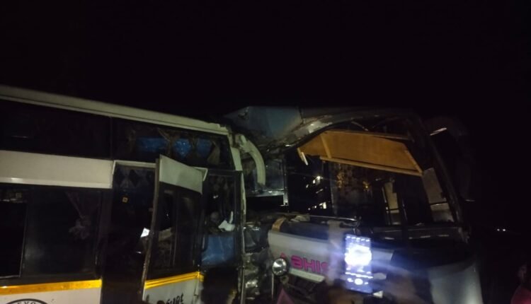 ସୁବର୍ଣ୍ଣପୁର ,୧୦/୦୫(ପିପିଟି): ସୁବର୍ଣ୍ଣପୁର ଜିଲ୍ଲା ଉଲୁଣ୍ଡା ବ୍ଲକ ଅନ୍ତର୍ଗତ ଡୁଡୁପାଲି ଛକ ଠାରେ ଆଜି ସନ୍ଧ୍ୟା ପ୍ରାୟ ୭ ଘଣ୍ଟା ସମୟରେ ଦୁଇଟି ଘରୋଇ ବାସ ମୁହାଁ ମୁହିଁ ଧକ୍କା ହୋଇଥିବା ସୂଚନା ମିଳିଛି l ସୂଚନା ଅନୁସାରେ ଏଥିରେ ପ୍ରାୟ ୩୦ ଯାତ୍ରୀ ଆହତ ହୋଇଥିବା ବେଳେ ଜଣେ ବସ୍ ଡ୍ରାଇଭର ଙ୍କ ମୃତ୍ୟୁ ଘଟିଥିବା ସୂଚନା ମିଳିଛି l ସୂଚନା ଅନୁସାରେ କରିସ୍ମା ନାମକ ଘରୋଇ ବସ ସୋନପୁର ପଟରୁ ସମ୍ବଲପୁର ଯାଉଥିଲା ବେଳେ ସମ୍ବଲପୁର ପଟରୁ ଚକାଡୋଳା ବସ ସୋନପୁର ପଟକୁ ଆସୁଥିଲା l ଏହି ସମୟ ରେ ଡୁଡୁପାଲି ଠାରେ ଦୁଇ ବସ ମୁହାଁ ମୁହିଁ ଧକ୍କା ହୋଇଥିଲା l ଦୁର୍ଘଟଣା ରେ ଆହତ ମାନଙ୍କୁ ଉଲୁଣ୍ଡା ଏବଂ ସୁବର୍ଣ୍ଣପୁର ଜିଲ୍ଲା ମୁଖ୍ୟ ଡାକ୍ତରଖାନା କୁ ସ୍ଥାନାନ୍ତର କରାଯାଇଥିବା ଜଣାପଡ଼ିଛି l