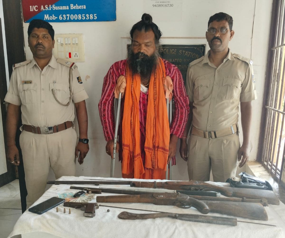 ବେଲଗୁଣ୍ଠା,୨୩/୦୪(ପିପିଟି):ଗଞ୍ଜାମ ଜିଲ୍ଲା ଗାଙ୍ଗପୁର ଥାନା, ସୋରଡ଼ା ବ୍ଲକ ଅନ୍ତର୍ଗତ ସିଆରିମାଳ ଗ୍ରାମରେ ଗାଙ୍ଗପୁର ପୋଲିସ ଏକ ବଡ଼ ଧରଣର ସଫଳତା ହାସଲ କରିଛି। ବେଆଇନ କାଠ ମିଲ୍ ଉପରେ ଚଢ଼ାଉ ସମୟରେ ଜଣେ ଦୁର୍ଦ୍ଦାନ୍ତ ଅପରାଧୀ ଲମ୍ବୁ ତାରିଣୀ ଓ ତା’ର ସହଯୋଗୀଙ୍କୁ ଗିରଫ କରାଯିବା ସହ ସେମାନଙ୍କ ନିକଟରୁ ବେଆଇନ ମାରଣାସ୍ତ୍ର ଜବତ କରାଯାଇଛି।୨୩ ଏପ୍ରିଲ ୨୦୨୬ ତାରିଖ ବିଳମ୍ବିତ ରାତି ପ୍ରାୟ ୧୨ଟା ୧୦ ମିନିଟ ସମୟରେ,ଉତ୍ତର ବନଖଣ୍ଡ ଅଧିକାରୀ ଭଞ୍ଜନଗରଙ୍କ ଅନୁରୋଧ କ୍ରମେ ଗାଙ୍ଗପୁର ଥାନା ଅଧିକାରୀ ବନବିହାରୀ ପ୍ରଧାନଙ୍କ ନେତୃତ୍ୱରେ ଏକ ମିଳିତ ଟିମ୍ ସିଆରିମାଳ ଗ୍ରାମକୁ ବେଆଇନ କାଠ ମିଲ୍ ଚଢ଼ାଉ ପାଇଁ ଯାଇଥିଲେ। ଏହି କାଠ ମିଲ୍ଟି ସେହି ଗ୍ରାମର ଲମ୍ବୁ ଓରଫ ନାରାୟଣ ତାରିଣୀ (୪୯) ଦ୍ୱାରା ପରିଚାଳିତ ହେଉଥିଲା। ଚଢ଼ାଉ ସମୟରେ ପୋଲିସକୁ ବିଶ୍ୱସ୍ତ ସୂତ୍ରରୁ ସୂଚନା ମିଳିଥିଲା ଯେ, ଲମ୍ବୁ ତା’ର ଫାର୍ମହାଉସ୍ରେ ବେଆଇନ ଅସ୍ତ୍ରଶସ୍ତ୍ର ମଧ୍ୟ ରଖିଛି। ଭଞ୍ଜନଗରର ଅତିରିକ୍ତ ତହସିଲଦାର ଅବିନାଶ କୁମାର ମାହାରଙ୍କ ଉପସ୍ଥିତିରେ ଲମ୍ବୁର ଘର ଯାଞ୍ଚ କରାଯାଇଥିଲା। ସେଠାରେ ଲମ୍ବୁ ସହ ତା’ର ସହଯୋଗୀ ତଥା ଜଗନ୍ନାଥପ୍ରସାନ ଥାନା ଅନ୍ତର୍ଗତ କୁମ୍ପାପଡା ଗ୍ରାମର ବୁଧିଆ ପାତ୍ର (୩୦) ଶୋଇଥିବା ଅବସ୍ଥାରେ ମିଳିଥିଲେ।