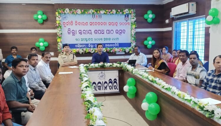 ମାଲକାନଗିରି, ୩୦/୧୦(ପିପିଟି):ଆଜି ଠାରୁ ୫ ନଭେମ୍ବର ପର୍ଯ୍ୟନ୍ତ ଦୁର୍ନୀତି ନିବାରଣ ସପ୍ତାହ ପାଳନ କରାଯିବ । ଏହି ଅବସରରେ ଆଜି ଲୋକସେବା ଭବନ ସଭାଗୃହରେ ରାଜ୍ୟସ୍ତରୀୟ ଦୁର୍ନୀତି ନିବାରଣ ସପ୍ତାହ ପାଳନ କରାଯାଇଛି । ମୁଖ୍ୟମନ୍ତ୍ରୀ ନବୀନ ପଟ୍ଟନାୟକ ସେଠାରେ ଉପସ୍ଥିତ ସମସ୍ତ ବିଭାଗର ଅଧିକାରୀ ଏବଂ ରାଜ୍ୟର ସମସ୍ତ ଜିଲ୍ଲା ଏବଂ ବ୍ଲକ ଗୁଡିକରୁ ଭିଡିଓ କନଫରେନସ ମାଧ୍ୟମରେ ଜଡିତ ହୋଇଥିବା ଅଧିକାରୀ, କର୍ମଚାରୀଙ୍କୁ ଶପଥପାଠ କରାଇଥିଲେ | ମାଲକାନଗିରି ଜିଲ୍ଲାପାଳଙ୍କ ଓସ୍ୱାନ କକ୍ଷରେ ଜିଲ୍ଲାପାଳ ବିଶାଲ ସିଂ, ଜିଲ୍ଲା ଆରକ୍ଷୀ ଅଧିକ୍ଷକ ନୀତେଶ ୱାଧୱାନୀ ଓ ଅତିରିକ୍ତ ଜିଲ୍ଲାପାଳ (ରାଜସ୍ବ) ବେଦବର ପ୍ରଧାନଙ୍କ ସମେତ ଜିଲ୍ଲା ସ୍ତରୀୟ ଅଧିକାରୀ, କର୍ମଚାରୀମାନେ ଶପଥ ପାଠ କରିଛନ୍ତି । ସେହିପରି ଜିଲ୍ଲା ଭିଜିଲାନ୍ସ ୟୁନିଟ ମାଲକାନଗିରି ଠାରେ ଡିଏସପି ସଦାନନ୍ଦ ପାଣିଙ୍କ ଅଧ୍ୟକ୍ଷତାରେ ଭିଜିଲାନ୍ସ କର୍ମଚାରୀଙ୍କ ଉପସ୍ଥିତିରେ ଶପଥ ପାଠ କରାଯାଇଛି । ଜିଲ୍ଲାର ଅନ୍ୟାନ୍ୟ ସମସ୍ତ ବିଭାଗରେ ଆଜି ଦୁର୍ନୀତି ନିବାରଣ ନିମନ୍ତେ ଶପଥ ପାଠ କରାଯାଇଛି। ସୂଚନା ଥାଉ କି, ଭିଜିଲାନ୍ସ ବିଭାଗ ପକ୍ଷରୁ ଦୁର୍ନୀତି ନିବାରଣ ସପ୍ତାହ ପାଳନ ଅବସରରେ ସପ୍ତାହ ବ୍ୟାପି ବିଭିନ୍ନ ସଚେତନତା ମୂଳକ କାର୍ଯ୍ୟକ୍ରମ ଆୟୋଜନ କରାଯିବ ବୋଲି ବିଭାଗ ପକ୍ଷରୁ ସୂଚନା ଦିଆଯାଇଛି ।